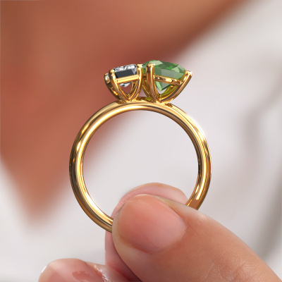 Dieser Verlobungsring aus 14 Karat Gold mit 9x7 mm Turmalin grün heißt Toi et Moi OVL-EME. Was macht Ihre Beziehung einzigartig? Was hat sie an sich, was Sie dazu bringt, auf die Knie zu fallen? Die einzigartige Verbindung zwischen Ihnen beiden wird durch einen ebenso einzigartigen Ring unterstrichen. Ein einzigartiger 2-stone Verlobungsring, der nur für sie gemacht wurde. Deshalb passt dieser Ring wie angegossen. Jedes einzelne Detail dieses charmant, Gold Turmalin grün Verlobungsring wird von unserem erfahrenen Goldschmieden in unserem eigenen Studio von Hand ausgesucht, bearbeitet und poliert. Das Endprodukt ist ein exquisiter Ring, einzigartig und bis zur Perfektion gebracht. Danach streben unsere erfahrenen Juweliere. Jedes Schmuckstück wird nur für Sie persönlich hergestellt, mit Liebe zum Detail und Design.Nachdem Sie Ihre Bestellung aufgegeben haben, beginnen unsere Goldschmiede mit dem kreativen Prozess der Herstellung Ihres Toi et Moi OVL-EME Verlobungsring. Wir haben keine Lager. Das ist vorteilhaft, da diese Kosten nicht an Sie weitergegeben werden. Daher sind wir in der Lage, Schmuck zu außergewöhnlich niedrigen Preisen anzubieten.Unser Team fügt unserer Online-Kollektion täglich neue Designs hinzu. Unsere Designer und Goldschmiede arbeiten zusammen, um das beste Design zu kreieren. Wir bemühen uns, eine vielfältige Kollektion von Schmuckstücken anzubieten. Vielleicht haben Sie ein bestimmtes Design im Sinn. Eines, dass Sie irgendwo gesehen haben. Gerne geben wir Ihnen eine kostenlose Beratung. Wir machen Ihnen ein Angebot, basierend auf einem fairen Preis/Leistungsverhältnis, das Sie verblüffen wird.Um es einfacher zu machen, bieten wir eine kostenlose 30-tägige Rücksendung.