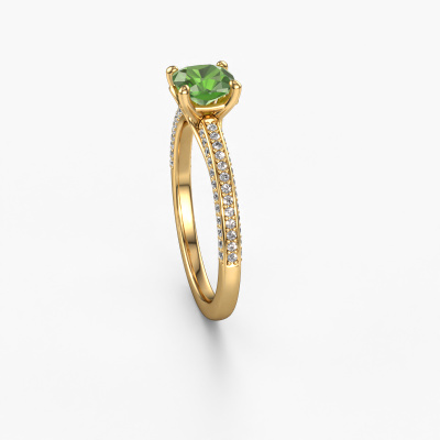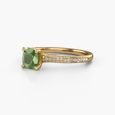 Der oben gezeigte Ring wird Elenore cus genannt. Es ist ein Pavé Solitär Ring, da er einen zentralen Edelstein und ein Band mit Pavé-Fassung hat. Dieser 14 Karat Gold ring ist mit einem 5.5 mm cussion Turmalin grün-Mittelstein besetzt und das Band hat eine Pavé-Fassung mit Lab grown Diamant. Jedes Schmuckstück wird hergestellt von einem Team leidenschaftlicher Goldschmiede und Schmuckdesigner. Das wird Ihr Kronjuwel unbedingt zu einem Blickfang machen.Dieser moderne Gold Pavé Solitär Verlobungsring mit Pavé-Fassung hat einen exquisiten, cussion Turmalin grün als Mittelstein. Um den zentralen Stein noch mehr zu betonen, hat das Band eine Pavé-Fassung mit weiteren Lab grown Diamant. Durch die offenen Krappen kann das Licht aus mehreren Winkeln auf den Turmalin grün treffen und der Turmalin grün-Ring funkelt noch mehr. Das obere Foto zeigt die leidenschaftlich handgefertigten Details des Rings. Die hohe Positionierung der Mittelstein ist ein echter Blickfang. Der perfekte Verlobungsring für das Kronjuwel Ihres Lebens!Nachdem Sie Ihre Bestellung aufgegeben haben, beginnen unsere Goldschmiede mit dem kreativen Prozess der Herstellung Ihres Elenore cus Verlobungsring. Wir haben keine Lager. Das ist vorteilhaft, da diese Kosten nicht an Sie weitergegeben werden. Daher sind wir in der Lage, Schmuck zu außergewöhnlich niedrigen Preisen anzubieten.Haben Sie irgendwo einen bestimmten Verlobungsring gefunden, den Sie Ihrem Liebsten schenken möchten? Sie können uns gerne sagen, was Sie wollen und wir werden Ihr Design in einen Einzigartigen moderne Verlobungsring verwandeln. Sie können die Entwicklungen Ihres Ringdesigns verfolgen, da wir 3D-Zeichnungen verwenden. Das gibt Ihnen eine realistische Vorschau, wie Ihr Design aussehen wird. Sie können auch einen Dummy vorbestellen. Ein Dummy ist ein Kunststoffring, der nach Ihrem Ringdesign gestaltet werden kann. Sie können ihn anprobieren und prüfen, ob seine Breite und Größe für Sie geeignet sind. Wir senden Ihnen gerne ein unverbindliches Angebot zu einem fairen Preis/Leistungsverhältnis. Sie werden in Anbetracht der Qualität des Rings und der Edelsteine überrascht sein.Um es einfacher zu machen, bieten wir eine kostenlose 30-tägige Rücksendung.