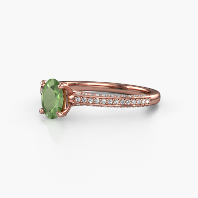 Der oben gezeigte Ring wird Elenore ovl genannt. Es ist ein Pavé Solitär Ring, da er einen zentralen Edelstein und ein Band mit Pavé-Fassung hat. Dieser 14 Karat Roségold ring ist mit einem 6.5x4.5 mm oval Turmalin grün-Mittelstein besetzt und das Band hat eine Pavé-Fassung mit Diamanten. Jedes Schmuckstück wird hergestellt von einem Team leidenschaftlicher Goldschmiede und Schmuckdesigner. Das wird Ihr Kronjuwel unbedingt zu einem Blickfang machen.Dieser exklusive Roségold Pavé Solitär Verlobungsring mit Pavé-Fassung hat einen exquisiten, oval Turmalin grün als Mittelstein. Um den zentralen Stein noch mehr zu betonen, hat das Band eine Pavé-Fassung mit weiteren Diamanten. Durch die offenen Krappen kann das Licht aus mehreren Winkeln auf den Turmalin grün treffen und der Turmalin grün-Ring funkelt noch mehr. Das obere Foto zeigt die leidenschaftlich handgefertigten Details des Rings. Die hohe Positionierung der Mittelstein ist ein echter Blickfang. Der perfekte Verlobungsring für das Kronjuwel Ihres Lebens!Nachdem Sie Ihre Bestellung aufgegeben haben, beginnen unsere Goldschmiede mit dem kreativen Prozess der Herstellung Ihres Elenore ovl Verlobungsring. Wir haben keine Lager. Das ist vorteilhaft, da diese Kosten nicht an Sie weitergegeben werden. Daher sind wir in der Lage, Schmuck zu außergewöhnlich niedrigen Preisen anzubieten.Haben Sie irgendwo einen bestimmten Verlobungsring gefunden, den Sie Ihrem Liebsten schenken möchten? Sie können uns gerne sagen, was Sie wollen und wir werden Ihr Design in einen Einzigartigen exklusive Verlobungsring verwandeln. Sie können die Entwicklungen Ihres Ringdesigns verfolgen, da wir 3D-Zeichnungen verwenden. Das gibt Ihnen eine realistische Vorschau, wie Ihr Design aussehen wird. Sie können auch einen Dummy vorbestellen. Ein Dummy ist ein Kunststoffring, der nach Ihrem Ringdesign gestaltet werden kann. Sie können ihn anprobieren und prüfen, ob seine Breite und Größe für Sie geeignet sind. Wir senden Ihnen gerne ein unverbindliches Angebot zu einem fairen Preis/Leistungsverhältnis. Sie werden in Anbetracht der Qualität des Rings und der Edelsteine überrascht sein.Um es einfacher zu machen, bieten wir eine kostenlose 30-tägige Rücksendung.
