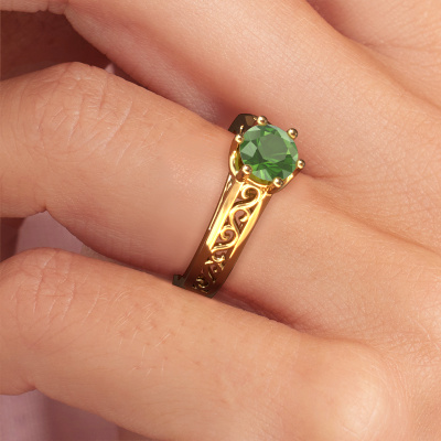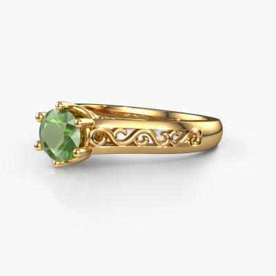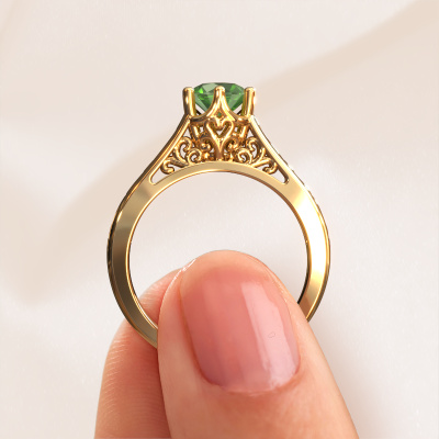 Der oben gezeigte Verlobungsring wird Shan genannt. Wir nennen das einen Solitär-Ring, denn er hat einen einzelnen Edelstein. Es ist ein 14 Karat Gold ring, mit 6 mm rund Turmalin grün. Das Besondere an unserem Konfigurator ist dass Sie selbst einem Schmuckstück zusammenstellen können zu einem eigenen persönlichen Schmuckstück. Dieser Solitäre Verlobungsring ist gefertigt in der Edelmetall Kombination Gold mit Gold, aber Sie können also auch wählen aus anderen Farben. Jedes Schmuckstück wird hergestellt von einem Team leidenschaftlicher Goldschmiede und Schmuckdesigner. Das wird Ihr Kronjuwel unbedingt zu einem Blickfang machen. Der Solitär-Verlobungsring ist eine Sonderform des Verlobungsring. Seine offenen Krappen ermöglichen, dass Licht aus mehr Winkeln auf den Edelstein trifft. Dieser Keltische Verlobungsring ist durch die hohe Positionierung des Edelsteins ein atemberaubender Blickfang. Wir schmücken diesen Solitär-Ring sorgfältig von Hand, damit Sie Ihren Anfrage mit einem einzigartigen Ring würdigen können. Die Liebe Ihres Lebens verdient nur das Beste. Mit unserer modernen Technik können wir Schmuckstücke von höchster Qualität mit größter Sorgfalt für Sie entwerfen und anpassen. Unsere Verlobungsringe sind immer um 30 Prozent günstiger als bei anderen Juwelieren. Wir fertigen Verlobungsringe auf Bestellung, also müssen wir keine großen Lager unterhalten. Wenn Sie ein bestimmtes Budget haben, beraten wir Sie gerne entsprechend.Haben Sie irgendwo einen bestimmten Verlobungsring gefunden, den Sie Ihrem Liebsten schenken möchten? Sie können uns gerne sagen, was Sie wollen und wir werden Ihr Design in einen Einzigartigen Keltische Verlobungsring verwandeln. Sie können die Entwicklungen Ihres Ringdesigns verfolgen, da wir 3D-Zeichnungen verwenden. Das gibt Ihnen eine realistische Vorschau, wie Ihr Design aussehen wird. Sie können auch einen Dummy vorbestellen. Ein Dummy ist ein Kunststoffring, der nach Ihrem Ringdesign gestaltet werden kann. Sie können ihn anprobieren und prüfen, ob seine Breite und Größe für Sie geeignet sind. Wir senden Ihnen gerne ein unverbindliches Angebot zu einem fairen Preis/Leistungsverhältnis. Sie werden in Anbetracht der Qualität des Rings und der Edelsteine überrascht sein.Um es einfacher zu machen, bieten wir eine kostenlose 30-tägige Rücksendung.