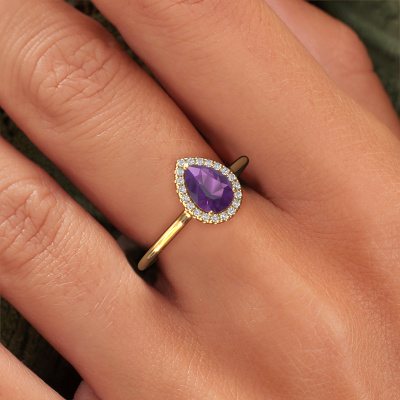Dieser Ring aus 14 Karat Gold heißt Seline per 1 und hat 7x5 mm Amethyst. Dieser charmant 14 Karat Gold Halo Verlobungsring ist ein wahres Kunstwerk! Die Ornamente werden mit viel Geduld und großer Leidenschaft gefertigt. Um diesen Ring mit großer Präzision zu schaffen, erfordert dieses Handwerk ein scharfes Auge und eine geschickte Hand. Eine Herausforderung, die bei unseren erfahrenen Juwelieren ein Feuer entfacht. Die exquisiten Amethysten sind auf eine besondere Art und Weise gefasst, so dass sie noch mehr hervorstechen. Dies verleiht dem Ring eine noch glamourösere Erscheinung. Der Ring an sich ist schon wegen der Edelsteine einzigartig, die wir speziell für diesen Ring auswählen. Obendrein wählen Sie die Edelmetalle aus, mit denen Ihr einzigartiger Ring für die außergewöhnlichste Frau Ihres Lebens gemacht wird! Jedes Schmuckstück wird hergestellt mit Leidenschaft und Liebe, von einem unserer Meister-Goldschmiede.Nachdem Sie Ihre Bestellung aufgegeben haben, beginnen unsere Goldschmiede mit dem kreativen Prozess der Herstellung Ihres Seline per 1 Verlobungsring. Wir haben keine Lager. Das ist vorteilhaft, da diese Kosten nicht an Sie weitergegeben werden. Daher sind wir in der Lage, Schmuck zu außergewöhnlich niedrigen Preisen anzubieten.Unser Team fügt unserer Online-Kollektion täglich neue Designs hinzu. Unsere Designer und Goldschmiede arbeiten zusammen, um das beste Design zu kreieren. Wir bemühen uns, eine vielfältige Kollektion von Schmuckstücken anzubieten. Vielleicht haben Sie ein bestimmtes Design im Sinn. Eines, dass Sie irgendwo gesehen haben. Gerne geben wir Ihnen eine kostenlose Beratung. Wir machen Ihnen ein Angebot, basierend auf einem fairen Preis/Leistungsverhältnis, das Sie verblüffen wird.Um es einfacher zu machen, bieten wir eine kostenlose 30-tägige Rücksendung.