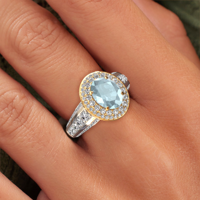 Dieser Ring aus 14 Karat Weißgold heißt Nancie und hat 9x7 mm Aquamarin. Dieser graziöse 14 Karat Weißgold Halo Verlobungsring ist ein wahres Kunstwerk! Die Ornamente werden mit viel Geduld und großer Leidenschaft gefertigt. Um diesen Ring mit großer Präzision zu schaffen, erfordert dieses Handwerk ein scharfes Auge und eine geschickte Hand. Eine Herausforderung, die bei unseren erfahrenen Juwelieren ein Feuer entfacht. Die exquisiten Aquamarins sind auf eine besondere Art und Weise gefasst, so dass sie noch mehr hervorstechen. Dies verleiht dem Ring eine noch glamourösere Erscheinung. Der Ring an sich ist schon wegen der Edelsteine einzigartig, die wir speziell für diesen Ring auswählen. Obendrein wählen Sie die Edelmetalle aus, mit denen Ihr einzigartiger Ring für die außergewöhnlichste Frau Ihres Lebens gemacht wird! Jedes Schmuckstück ist um Ihrem Finger Glanz zu verleihen. Jeder Ring wird von unseren Goldschmieden liebevoll von Hand gefertigt.Haben Sie ein bestimmtes Budget? Sie können uns gerne kontaktieren, damit wir Ihre Optionen besprechen können. Wir bieten unsere Verlobungsringe zum garantiert besten Preis, denn wir fertigen sie auf Bestellung. Solche Preise finden Sie nirgendwo anders!Unsere Designer und Goldschmiede arbeiten jeden Tag zusammen und versuchen, neue Schmuckstücke zu kreieren. Vielleicht haben Sie irgendwo einen schönen, klassische Verlobungsring gefunden, nach dem Ihr einzigartiger Ring gestaltet werden kann. Setzen Sie sich mit uns in Verbindung. Wir machen Ihnen ein Angebot, basierend auf einem fairen Preis/Leistungsverhältnis, das Sie begeistern wird.Um es einfacher zu machen, bieten wir eine kostenlose 30-tägige Rücksendung.