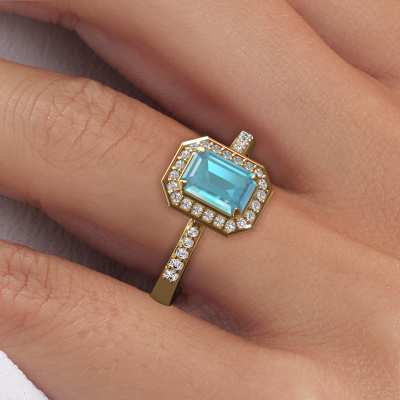 Dieser Ring aus 14 Karat Gold heißt Dodie 2 eme und hat 7x5 mm Blau Topas. Dieser schöne 14 Karat Gold Halo Verlobungsring ist ein wahres Kunstwerk! Die Ornamente werden mit viel Geduld und großer Leidenschaft gefertigt. Um diesen Ring mit großer Präzision zu schaffen, erfordert dieses Handwerk ein scharfes Auge und eine geschickte Hand. Eine Herausforderung, die bei unseren erfahrenen Juwelieren ein Feuer entfacht. Die exquisiten Blaue Topas sind auf eine besondere Art und Weise gefasst, so dass sie noch mehr hervorstechen. Dies verleiht dem Ring eine noch glamourösere Erscheinung. Der Ring an sich ist schon wegen der Edelsteine einzigartig, die wir speziell für diesen Ring auswählen. Obendrein wählen Sie die Edelmetalle aus, mit denen Ihr einzigartiger Ring für die außergewöhnlichste Frau Ihres Lebens gemacht wird! Jedes Schmuckstück wird nur für Sie persönlich hergestellt, mit Liebe zum Detail und Design.Da wir unsere eigenen Ringe entwerfen und liefern, können wir Ihnen einen Verlobungsring zu einem Preis anbieten, den Sie nirgendwo anders finden. Ein Ring wird auf Bestellung angefertigt, wodurch kein überschüssiges Material anfällt. So können wir Ihnen ein gutes Angebot zum besten Preis machen. Wir verstehen, dass es sich riskant anfühlt, Ihren Verlobungsring online zu kaufen. Jedoch helfen wir Ihnen gerne beim Designprozess unter Berücksichtigung Ihres Budgets.Haben Sie einen bestimmten Ring im Sinn? Eines, dass Sie irgendwo gesehen haben. Bitte zögern Sie nicht, uns zu sagen, was Sie wollen und wir werden Ihr Design in einen Einzigartigen Verlobungsring verwandeln. Sie können die Entwicklungen Ihres Ringdesigns verfolgen, da wir 3D-Zeichnungen verwenden. Das gibt Ihnen eine realistische Vorschau Ihres Designs. Wir senden Ihnen gerne ein unverbindliches Angebot zu einem fairen Preis/Leistungsverhältnis. Es wird Sie erstaunen.Um es einfacher zu machen, bieten wir eine kostenlose 30-tägige Rücksendung.
