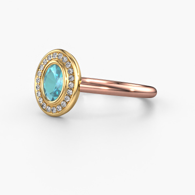 Der oben gezeigte Verlobungsring wird Noud 1 OVL genannt. Es ist ein Halo Ring, da er einen zentralen Edelstein und ein Band mit Pavé-Fassung hat. Der 14 Karat Roségold ring ist mit einem 6x4 mm oval Blau Topas-Mittelstein besetzt und um ihn herum eine Pavé-Fassung mit Lab grown Diamant. Was diesen klassische, Roségold Halo Ring besonders macht, sind die kleineren Steine, die den zentralen Stein umschließen. Dieser wunderschöne Verlobungsring wird als Halo Ring bezeichnet, da die kleineren Edelsteine dem zentralen Stein einen Lichthof geben. Damit die kleineren Steine den Mittelstein verstärken, müssen sie so platziert werden, dass keine Lichteinflüsse auftreten. Und hier kommen unsere erfahrenen Goldschmiede ins Spiel. Jeder einzelne Stein wird sorgfältig von Hand in den Ring gesetzt. Während der Herstellung wird der Lichteinfall ständig überprüft. So können wir sicherstellen, dass der spezielle Lichtkranz noch sichtbar ist. Am Ende erhalten Sie einen einzigartigen Verlobungsring mit einem Blaue Topas Ihrer Wahl in der Mitte. Sie können sich die Wirkung eines solchen Ringes vorstellen, wenn Sie ihn an ihrem besonderen Tag für sie zum Leuchten bringen. Durch die Kombination modernster Technik mit uralter Handwerkskunst können wir alle Verlobungsringe in unserem eigenen Studio anfertigen. Jedes Schmuckstück wird auf Anfrage gefertigt. Das ist vorteilhaft, weil wir Ihnen dadurch einen Preis anbieten können, den Sie nirgendwo anders finden.Unser Team fügt unserer Online-Kollektion täglich neue Designs hinzu. Unsere Designer und Goldschmiede arbeiten zusammen, um das beste Design zu kreieren. Wir bemühen uns, eine vielfältige Kollektion von Schmuckstücken anzubieten. Vielleicht haben Sie ein bestimmtes Design im Sinn. Eines, dass Sie irgendwo gesehen haben. Gerne geben wir Ihnen eine kostenlose Beratung. Wir machen Ihnen ein Angebot, basierend auf einem fairen Preis/Leistungsverhältnis, das Sie verblüffen wird.Um es einfacher zu machen, bieten wir eine kostenlose 30-tägige Rücksendung.