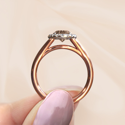 Dieser Ring aus 14 Karat Roségold heißt Verla ovl 1 und hat 1.25 crt Braun Diamant. Dieser gespaltene Bänder 14 Karat Roségold Halo Verlobungsring ist ein wahres Kunstwerk! Die Ornamente werden mit viel Geduld und großer Leidenschaft gefertigt. Um diesen Ring mit großer Präzision zu schaffen, erfordert dieses Handwerk ein scharfes Auge und eine geschickte Hand. Eine Herausforderung, die bei unseren erfahrenen Juwelieren ein Feuer entfacht. Die exquisiten Braune Diamanten sind auf eine besondere Art und Weise gefasst, so dass sie noch mehr hervorstechen. Dies verleiht dem Ring eine noch glamourösere Erscheinung. Der Ring an sich ist schon wegen der Edelsteine einzigartig, die wir speziell für diesen Ring auswählen. Obendrein wählen Sie die Edelmetalle aus, mit denen Ihr einzigartiger Ring für die außergewöhnlichste Frau Ihres Lebens gemacht wird! Jedes Schmuckstück lässt Ihren Finger erstrahlen. Ihr Ring ist mit Liebe von unseren Goldschmieden handgefertigt.Durch die Kombination modernster Technik mit uralter Handwerkskunst können wir alle Verlobungsringe in unserem eigenen Studio anfertigen. Jedes Schmuckstück wird auf Anfrage gefertigt. Das ist vorteilhaft, weil wir Ihnen dadurch einen Preis anbieten können, den Sie nirgendwo anders finden.Haben Sie einen bestimmten Ring im Sinn? Eines, dass Sie irgendwo gesehen haben. Bitte zögern Sie nicht, uns zu sagen, was Sie wollen und wir werden Ihr Design in einen Einzigartigen Verlobungsring verwandeln. Sie können die Entwicklungen Ihres Ringdesigns verfolgen, da wir 3D-Zeichnungen verwenden. Das gibt Ihnen eine realistische Vorschau Ihres Designs. Wir senden Ihnen gerne ein unverbindliches Angebot zu einem fairen Preis/Leistungsverhältnis. Es wird Sie erstaunen.Um es einfacher zu machen, bieten wir eine kostenlose 30-tägige Rücksendung.