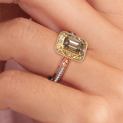 Dieser Verlobungsring aus 14 Karat Roségold heißt Alice EME und hat einen 1.35 crt Braun Diamant. Ein außergewöhnlicher, Roségold Vintage Ring. Einer, der die Liebe Ihres Lebens mit Sicherheit wie ein Braun Diamant erstrahlen lässt! Das hoffen wir zu erreichen. Dieser Vintage Verlobungsring ist mit exquisiten Braun Diamant besetzt. Welchen Edelstein Sie aus unserer Auswahl haben möchten, liegt ganz bei Ihnen. Der Edelstein wird mit großer Sorgfalt ausgewählt. Denn wir glauben, dass Ihr Perle Ränder Verlobungsring nur mit dem schönsten Edelstein gekrönt sein darf. Sehen Sie das auch so? Unser erfahrener Juwelier entwirft Ihren Ring in unserem eigenen Studio, wo der Braun Diamant mit großer Präzision eingefasst wird. Der Ring wird dann bearbeitet und poliert, bis er perfekt ist. Nichts als das Beste für die Liebe Ihres Lebens! Jedes Schmuckstück wird von unseren Meister-Goldschmieden in unserem eigenen Studio für Sie gefertigt.Durch die Kombination modernster Technik mit uralter Handwerkskunst können wir alle Verlobungsringe in unserem eigenen Studio anfertigen. Jedes Schmuckstück wird auf Anfrage gefertigt. Das ist vorteilhaft, weil wir Ihnen dadurch einen Preis anbieten können, den Sie nirgendwo anders finden.Haben Sie einen bestimmten Ring im Sinn? Eines, dass Sie irgendwo gesehen haben. Bitte zögern Sie nicht, uns zu sagen, was Sie wollen und wir werden Ihr Design in einen Einzigartigen Verlobungsring verwandeln. Sie können die Entwicklungen Ihres Ringdesigns verfolgen, da wir 3D-Zeichnungen verwenden. Das gibt Ihnen eine realistische Vorschau Ihres Designs. Wir senden Ihnen gerne ein unverbindliches Angebot zu einem fairen Preis/Leistungsverhältnis. Es wird Sie erstaunen.Um es einfacher zu machen, bieten wir eine kostenlose 30-tägige Rücksendung.