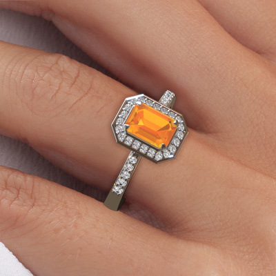 Dieser Ring aus Platin heißt Dodie 2 eme und hat 7x5 mm Citrin. Dieser schöne Platin Halo Verlobungsring ist ein wahres Kunstwerk! Die Ornamente werden mit viel Geduld und großer Leidenschaft gefertigt. Um diesen Ring mit großer Präzision zu schaffen, erfordert dieses Handwerk ein scharfes Auge und eine geschickte Hand. Eine Herausforderung, die bei unseren erfahrenen Juwelieren ein Feuer entfacht. Die exquisiten Citrin sind auf eine besondere Art und Weise gefasst, so dass sie noch mehr hervorstechen. Dies verleiht dem Ring eine noch glamourösere Erscheinung. Der Ring an sich ist schon wegen der Edelsteine einzigartig, die wir speziell für diesen Ring auswählen. Obendrein wählen Sie die Edelmetalle aus, mit denen Ihr einzigartiger Ring für die außergewöhnlichste Frau Ihres Lebens gemacht wird! Jedes Schmuckstück wird nur für Sie persönlich hergestellt, mit Liebe zum Detail und Design.Da wir unsere eigenen Ringe entwerfen und liefern, können wir Ihnen einen Verlobungsring zu einem Preis anbieten, den Sie nirgendwo anders finden. Ein Ring wird auf Bestellung angefertigt, wodurch kein überschüssiges Material anfällt. So können wir Ihnen ein gutes Angebot zum besten Preis machen. Wir verstehen, dass es sich riskant anfühlt, Ihren Verlobungsring online zu kaufen. Jedoch helfen wir Ihnen gerne beim Designprozess unter Berücksichtigung Ihres Budgets.Haben Sie einen bestimmten Ring im Sinn? Eines, dass Sie irgendwo gesehen haben. Bitte zögern Sie nicht, uns zu sagen, was Sie wollen und wir werden Ihr Design in einen Einzigartigen Verlobungsring verwandeln. Sie können die Entwicklungen Ihres Ringdesigns verfolgen, da wir 3D-Zeichnungen verwenden. Das gibt Ihnen eine realistische Vorschau Ihres Designs. Wir senden Ihnen gerne ein unverbindliches Angebot zu einem fairen Preis/Leistungsverhältnis. Es wird Sie erstaunen.Um es einfacher zu machen, bieten wir eine kostenlose 30-tägige Rücksendung.