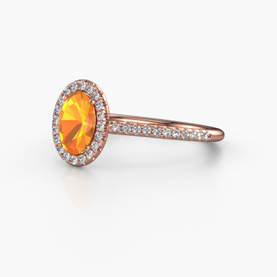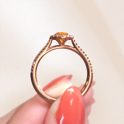 Der oben gezeigte Verlobungsring wird Seline ovl 2 genannt. Es ist ein Halo Ring, da er einen zentralen Edelstein und ein Band mit Pavé-Fassung hat. Der 14 Karat Roségold ring ist mit einem 7x5 mm oval Citrin-Mittelstein besetzt und um ihn herum eine Pavé-Fassung mit Diamanten. Was diesen exklusive, Roségold Halo Ring besonders macht, sind die kleineren Steine, die den zentralen Stein umschließen. Dieser wunderschöne Verlobungsring wird als Halo Ring bezeichnet, da die kleineren Edelsteine dem zentralen Stein einen Lichthof geben. Damit die kleineren Steine den Mittelstein verstärken, müssen sie so platziert werden, dass keine Lichteinflüsse auftreten. Und hier kommen unsere erfahrenen Goldschmiede ins Spiel. Jeder einzelne Stein wird sorgfältig von Hand in den Ring gesetzt. Während der Herstellung wird der Lichteinfall ständig überprüft. So können wir sicherstellen, dass der spezielle Lichtkranz noch sichtbar ist. Am Ende erhalten Sie einen einzigartigen Verlobungsring mit einem Citrin Ihrer Wahl in der Mitte. Sie können sich die Wirkung eines solchen Ringes vorstellen, wenn Sie ihn an ihrem besonderen Tag für sie zum Leuchten bringen. Nachdem Sie Ihre Bestellung aufgegeben haben, beginnen unsere Goldschmiede mit dem kreativen Prozess der Herstellung Ihres Seline ovl 2 Verlobungsring. Wir haben keine Lager. Das ist vorteilhaft, da diese Kosten nicht an Sie weitergegeben werden. Daher sind wir in der Lage, Schmuck zu außergewöhnlich niedrigen Preisen anzubieten.Unser Team fügt unserer Online-Kollektion täglich neue Designs hinzu. Unsere Designer und Goldschmiede arbeiten zusammen, um das beste Design zu kreieren. Wir bemühen uns, eine vielfältige Kollektion von Schmuckstücken anzubieten. Vielleicht haben Sie ein bestimmtes Design im Sinn. Eines, dass Sie irgendwo gesehen haben. Gerne geben wir Ihnen eine kostenlose Beratung. Wir machen Ihnen ein Angebot, basierend auf einem fairen Preis/Leistungsverhältnis, das Sie verblüffen wird.Um es einfacher zu machen, bieten wir eine kostenlose 30-tägige Rücksendung.
