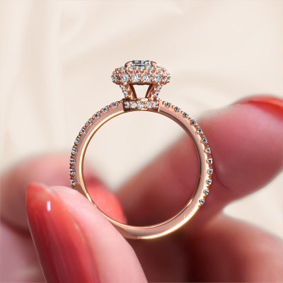 Der oben gezeigte Verlobungsring wird Talitha CUS genannt. Es ist ein Halo Ring, da er einen zentralen Edelstein und ein Band mit Pavé-Fassung hat. Der 14 Karat Roségold ring ist mit einem 0.50 crt cussion Diamant-Mittelstein besetzt und um ihn herum eine Pavé-Fassung mit Diamanten. Was diesen traditionell, Roségold Halo Ring besonders macht, sind die kleineren Steine, die den zentralen Stein umschließen. Dieser wunderschöne Verlobungsring wird als Halo Ring bezeichnet, da die kleineren Edelsteine dem zentralen Stein einen Lichthof geben. Damit die kleineren Steine den Mittelstein verstärken, müssen sie so platziert werden, dass keine Lichteinflüsse auftreten. Und hier kommen unsere erfahrenen Goldschmiede ins Spiel. Jeder einzelne Stein wird sorgfältig von Hand in den Ring gesetzt. Während der Herstellung wird der Lichteinfall ständig überprüft. So können wir sicherstellen, dass der spezielle Lichtkranz noch sichtbar ist. Am Ende erhalten Sie einen einzigartigen Verlobungsring mit einem Diamanten Ihrer Wahl in der Mitte. Sie können sich die Wirkung eines solchen Ringes vorstellen, wenn Sie ihn an ihrem besonderen Tag für sie zum Leuchten bringen. Da wir unsere eigenen Ringe entwerfen und liefern, können wir Ihnen einen Verlobungsring zu einem Preis anbieten, den Sie nirgendwo anders finden. Ein Ring wird auf Bestellung angefertigt, wodurch kein überschüssiges Material anfällt. So können wir Ihnen ein gutes Angebot zum besten Preis machen. Wir verstehen, dass es sich riskant anfühlt, Ihren Verlobungsring online zu kaufen. Jedoch helfen wir Ihnen gerne beim Designprozess unter Berücksichtigung Ihres Budgets.Unsere Designer und Goldschmiede arbeiten jeden Tag zusammen und versuchen, neue Schmuckstücke zu kreieren. Vielleicht haben Sie irgendwo einen schönen, traditionell Verlobungsring gefunden, nach dem Ihr einzigartiger Ring gestaltet werden kann. Setzen Sie sich mit uns in Verbindung. Wir machen Ihnen ein Angebot, basierend auf einem fairen Preis/Leistungsverhältnis, das Sie begeistern wird.Um es einfacher zu machen, bieten wir eine kostenlose 30-tägige Rücksendung.