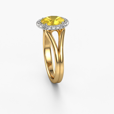 Dieser Ring aus 14 Karat Gold heißt Verla ovl 1 und hat 8x6 mm Gelb Saphir. Dieser gespaltene Bänder 14 Karat Gold Halo Verlobungsring ist ein wahres Kunstwerk! Die Ornamente werden mit viel Geduld und großer Leidenschaft gefertigt. Um diesen Ring mit großer Präzision zu schaffen, erfordert dieses Handwerk ein scharfes Auge und eine geschickte Hand. Eine Herausforderung, die bei unseren erfahrenen Juwelieren ein Feuer entfacht. Die exquisiten Gelb Saphir sind auf eine besondere Art und Weise gefasst, so dass sie noch mehr hervorstechen. Dies verleiht dem Ring eine noch glamourösere Erscheinung. Der Ring an sich ist schon wegen der Edelsteine einzigartig, die wir speziell für diesen Ring auswählen. Obendrein wählen Sie die Edelmetalle aus, mit denen Ihr einzigartiger Ring für die außergewöhnlichste Frau Ihres Lebens gemacht wird! Jedes Schmuckstück lässt Ihren Finger erstrahlen. Ihr Ring ist mit Liebe von unseren Goldschmieden handgefertigt.Durch die Kombination modernster Technik mit uralter Handwerkskunst können wir alle Verlobungsringe in unserem eigenen Studio anfertigen. Jedes Schmuckstück wird auf Anfrage gefertigt. Das ist vorteilhaft, weil wir Ihnen dadurch einen Preis anbieten können, den Sie nirgendwo anders finden.Haben Sie einen bestimmten Ring im Sinn? Eines, dass Sie irgendwo gesehen haben. Bitte zögern Sie nicht, uns zu sagen, was Sie wollen und wir werden Ihr Design in einen Einzigartigen Verlobungsring verwandeln. Sie können die Entwicklungen Ihres Ringdesigns verfolgen, da wir 3D-Zeichnungen verwenden. Das gibt Ihnen eine realistische Vorschau Ihres Designs. Wir senden Ihnen gerne ein unverbindliches Angebot zu einem fairen Preis/Leistungsverhältnis. Es wird Sie erstaunen.Um es einfacher zu machen, bieten wir eine kostenlose 30-tägige Rücksendung.