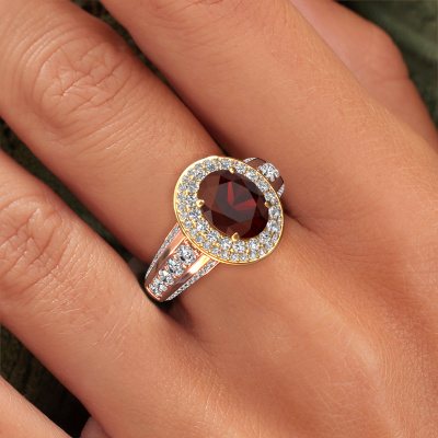 Dieser Ring aus 14 Karat Roségold heißt Nancie und hat 9x7 mm Granat. Dieser graziöse 14 Karat Roségold Halo Verlobungsring ist ein wahres Kunstwerk! Die Ornamente werden mit viel Geduld und großer Leidenschaft gefertigt. Um diesen Ring mit großer Präzision zu schaffen, erfordert dieses Handwerk ein scharfes Auge und eine geschickte Hand. Eine Herausforderung, die bei unseren erfahrenen Juwelieren ein Feuer entfacht. Die exquisiten Granat sind auf eine besondere Art und Weise gefasst, so dass sie noch mehr hervorstechen. Dies verleiht dem Ring eine noch glamourösere Erscheinung. Der Ring an sich ist schon wegen der Edelsteine einzigartig, die wir speziell für diesen Ring auswählen. Obendrein wählen Sie die Edelmetalle aus, mit denen Ihr einzigartiger Ring für die außergewöhnlichste Frau Ihres Lebens gemacht wird! Jedes Schmuckstück ist um Ihrem Finger Glanz zu verleihen. Jeder Ring wird von unseren Goldschmieden liebevoll von Hand gefertigt.Haben Sie ein bestimmtes Budget? Sie können uns gerne kontaktieren, damit wir Ihre Optionen besprechen können. Wir bieten unsere Verlobungsringe zum garantiert besten Preis, denn wir fertigen sie auf Bestellung. Solche Preise finden Sie nirgendwo anders!Unsere Designer und Goldschmiede arbeiten jeden Tag zusammen und versuchen, neue Schmuckstücke zu kreieren. Vielleicht haben Sie irgendwo einen schönen, klassische Verlobungsring gefunden, nach dem Ihr einzigartiger Ring gestaltet werden kann. Setzen Sie sich mit uns in Verbindung. Wir machen Ihnen ein Angebot, basierend auf einem fairen Preis/Leistungsverhältnis, das Sie begeistern wird.Um es einfacher zu machen, bieten wir eine kostenlose 30-tägige Rücksendung.