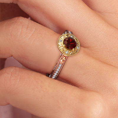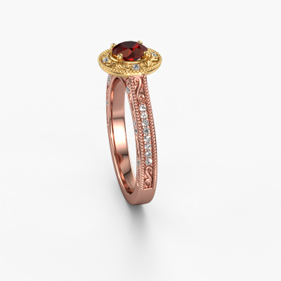 Dieser Verlobungsring aus 14 Karat Roségold heißt Alice RND und hat einen 5 mm Granat. Ein außergewöhnlicher, Roségold Vintage Ring. Einer, der die Liebe Ihres Lebens mit Sicherheit wie ein Granat erstrahlen lässt! Das hoffen wir zu erreichen. Dieser Vintage Verlobungsring ist mit exquisiten Granat besetzt. Welchen Edelstein Sie aus unserer Auswahl haben möchten, liegt ganz bei Ihnen. Der Edelstein wird mit großer Sorgfalt ausgewählt. Denn wir glauben, dass Ihr Perle Ränder Verlobungsring nur mit dem schönsten Edelstein gekrönt sein darf. Sehen Sie das auch so? Unser erfahrener Juwelier entwirft Ihren Ring in unserem eigenen Studio, wo der Granat mit großer Präzision eingefasst wird. Der Ring wird dann bearbeitet und poliert, bis er perfekt ist. Nichts als das Beste für die Liebe Ihres Lebens! Jedes Schmuckstück lässt Ihren Finger erstrahlen. Ihr Ring ist mit Liebe von unseren Goldschmieden handgefertigt.Haben Sie ein bestimmtes Budget? Sie können uns gerne kontaktieren, damit wir Ihre Optionen besprechen können. Wir bieten unsere Verlobungsringe zum garantiert besten Preis, denn wir fertigen sie auf Bestellung. Solche Preise finden Sie nirgendwo anders!Unser Team fügt unserer Online-Kollektion täglich neue Designs hinzu. Unsere Designer und Goldschmiede arbeiten zusammen, um das beste Design zu kreieren. Wir bemühen uns, eine vielfältige Kollektion von Schmuckstücken anzubieten. Vielleicht haben Sie ein bestimmtes Design im Sinn. Eines, dass Sie irgendwo gesehen haben. Gerne geben wir Ihnen eine kostenlose Beratung. Wir machen Ihnen ein Angebot, basierend auf einem fairen Preis/Leistungsverhältnis, das Sie verblüffen wird.Um es einfacher zu machen, bieten wir eine kostenlose 30-tägige Rücksendung.