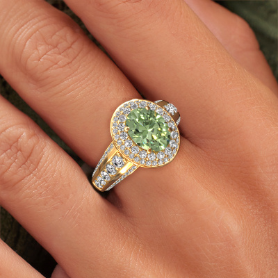 Dieser Ring aus 14 Karat Gold heißt Nancie und hat 9x7 mm grüner Labor-Diamant. Dieser graziöse 14 Karat Gold Halo Verlobungsring ist ein wahres Kunstwerk! Die Ornamente werden mit viel Geduld und großer Leidenschaft gefertigt. Um diesen Ring mit großer Präzision zu schaffen, erfordert dieses Handwerk ein scharfes Auge und eine geschickte Hand. Eine Herausforderung, die bei unseren erfahrenen Juwelieren ein Feuer entfacht. Die exquisiten grüner Labor-Diamanten sind auf eine besondere Art und Weise gefasst, so dass sie noch mehr hervorstechen. Dies verleiht dem Ring eine noch glamourösere Erscheinung. Der Ring an sich ist schon wegen der Edelsteine einzigartig, die wir speziell für diesen Ring auswählen. Obendrein wählen Sie die Edelmetalle aus, mit denen Ihr einzigartiger Ring für die außergewöhnlichste Frau Ihres Lebens gemacht wird! Jedes Schmuckstück ist um Ihrem Finger Glanz zu verleihen. Jeder Ring wird von unseren Goldschmieden liebevoll von Hand gefertigt.Haben Sie ein bestimmtes Budget? Sie können uns gerne kontaktieren, damit wir Ihre Optionen besprechen können. Wir bieten unsere Verlobungsringe zum garantiert besten Preis, denn wir fertigen sie auf Bestellung. Solche Preise finden Sie nirgendwo anders!Unsere Designer und Goldschmiede arbeiten jeden Tag zusammen und versuchen, neue Schmuckstücke zu kreieren. Vielleicht haben Sie irgendwo einen schönen, klassische Verlobungsring gefunden, nach dem Ihr einzigartiger Ring gestaltet werden kann. Setzen Sie sich mit uns in Verbindung. Wir machen Ihnen ein Angebot, basierend auf einem fairen Preis/Leistungsverhältnis, das Sie begeistern wird.Um es einfacher zu machen, bieten wir eine kostenlose 30-tägige Rücksendung.