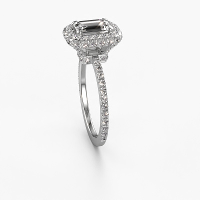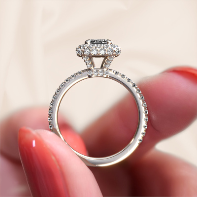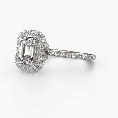 Der oben gezeigte Verlobungsring wird Talitha EME genannt. Es ist ein Halo Ring, da er einen zentralen Edelstein und ein Band mit Pavé-Fassung hat. Der 14 Karat Weißgold ring ist mit einem 1.15 crt smaragd schliff Lab-grown Diamant-Mittelstein besetzt und um ihn herum eine Pavé-Fassung mit Lab grown Diamant. Was diesen Luxus, Weißgold Halo Ring besonders macht, sind die kleineren Steine, die den zentralen Stein umschließen. Dieser wunderschöne Verlobungsring wird als Halo Ring bezeichnet, da die kleineren Edelsteine dem zentralen Stein einen Lichthof geben. Damit die kleineren Steine den Mittelstein verstärken, müssen sie so platziert werden, dass keine Lichteinflüsse auftreten. Und hier kommen unsere erfahrenen Goldschmiede ins Spiel. Jeder einzelne Stein wird sorgfältig von Hand in den Ring gesetzt. Während der Herstellung wird der Lichteinfall ständig überprüft. So können wir sicherstellen, dass der spezielle Lichtkranz noch sichtbar ist. Am Ende erhalten Sie einen einzigartigen Verlobungsring mit einem Lab grown Diamant Ihrer Wahl in der Mitte. Sie können sich die Wirkung eines solchen Ringes vorstellen, wenn Sie ihn an ihrem besonderen Tag für sie zum Leuchten bringen. Mit unserer modernen Technik können wir Schmuckstücke von höchster Qualität mit größter Sorgfalt für Sie entwerfen und anpassen. Unsere Verlobungsringe sind immer um 30 Prozent günstiger als bei anderen Juwelieren. Wir fertigen Verlobungsringe auf Bestellung, also müssen wir keine großen Lager unterhalten. Wenn Sie ein bestimmtes Budget haben, beraten wir Sie gerne entsprechend.Unser Team fügt unserer Online-Kollektion täglich neue Designs hinzu. Unsere Designer und Goldschmiede arbeiten zusammen, um das beste Design zu kreieren. Wir bemühen uns, eine vielfältige Kollektion von Schmuckstücken anzubieten. Vielleicht haben Sie ein bestimmtes Design im Sinn. Eines, dass Sie irgendwo gesehen haben. Gerne geben wir Ihnen eine kostenlose Beratung. Wir machen Ihnen ein Angebot, basierend auf einem fairen Preis/Leistungsverhältnis, das Sie verblüffen wird.Um es einfacher zu machen, bieten wir eine kostenlose 30-tägige Rücksendung.