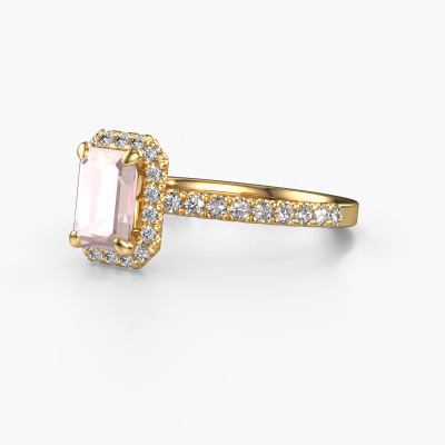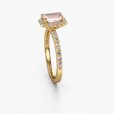 Der oben gezeigte Verlobungsring wird Miranda eme genannt. Es ist ein Halo Ring, da er einen zentralen Edelstein und ein Band mit Pavé-Fassung hat. Der 14 Karat Gold ring ist mit einem 7x5 mm smaragd schliff Morganit Champagner-Mittelstein besetzt und um ihn herum eine Pavé-Fassung mit Diamanten. Was diesen klassische, Gold Halo Ring besonders macht, sind die kleineren Steine, die den zentralen Stein umschließen. Dieser wunderschöne Verlobungsring wird als Halo Ring bezeichnet, da die kleineren Edelsteine dem zentralen Stein einen Lichthof geben. Damit die kleineren Steine den Mittelstein verstärken, müssen sie so platziert werden, dass keine Lichteinflüsse auftreten. Und hier kommen unsere erfahrenen Goldschmiede ins Spiel. Jeder einzelne Stein wird sorgfältig von Hand in den Ring gesetzt. Während der Herstellung wird der Lichteinfall ständig überprüft. So können wir sicherstellen, dass der spezielle Lichtkranz noch sichtbar ist. Am Ende erhalten Sie einen einzigartigen Verlobungsring mit einem Morganit Champagner Ihrer Wahl in der Mitte. Sie können sich die Wirkung eines solchen Ringes vorstellen, wenn Sie ihn an ihrem besonderen Tag für sie zum Leuchten bringen. Durch die Kombination modernster Technik mit uralter Handwerkskunst können wir alle Verlobungsringe in unserem eigenen Studio anfertigen. Jedes Schmuckstück wird auf Anfrage gefertigt. Das ist vorteilhaft, weil wir Ihnen dadurch einen Preis anbieten können, den Sie nirgendwo anders finden.Unsere Designer und Goldschmiede arbeiten jeden Tag zusammen und versuchen, neue Schmuckstücke zu kreieren. Vielleicht haben Sie irgendwo einen schönen, klassische Verlobungsring gefunden, nach dem Ihr einzigartiger Ring gestaltet werden kann. Setzen Sie sich mit uns in Verbindung. Wir machen Ihnen ein Angebot, basierend auf einem fairen Preis/Leistungsverhältnis, das Sie begeistern wird.Um es einfacher zu machen, bieten wir eine kostenlose 30-tägige Rücksendung.