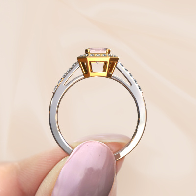 Dieser Ring aus 14 Karat Weißgold heißt Dodie 2 eme und hat 7x5 mm Morganit Champagner. Dieser schöne 14 Karat Weißgold Halo Verlobungsring ist ein wahres Kunstwerk! Die Ornamente werden mit viel Geduld und großer Leidenschaft gefertigt. Um diesen Ring mit großer Präzision zu schaffen, erfordert dieses Handwerk ein scharfes Auge und eine geschickte Hand. Eine Herausforderung, die bei unseren erfahrenen Juwelieren ein Feuer entfacht. Die exquisiten Morganit Champagner sind auf eine besondere Art und Weise gefasst, so dass sie noch mehr hervorstechen. Dies verleiht dem Ring eine noch glamourösere Erscheinung. Der Ring an sich ist schon wegen der Edelsteine einzigartig, die wir speziell für diesen Ring auswählen. Obendrein wählen Sie die Edelmetalle aus, mit denen Ihr einzigartiger Ring für die außergewöhnlichste Frau Ihres Lebens gemacht wird! Jedes Schmuckstück wird nur für Sie persönlich hergestellt, mit Liebe zum Detail und Design.Da wir unsere eigenen Ringe entwerfen und liefern, können wir Ihnen einen Verlobungsring zu einem Preis anbieten, den Sie nirgendwo anders finden. Ein Ring wird auf Bestellung angefertigt, wodurch kein überschüssiges Material anfällt. So können wir Ihnen ein gutes Angebot zum besten Preis machen. Wir verstehen, dass es sich riskant anfühlt, Ihren Verlobungsring online zu kaufen. Jedoch helfen wir Ihnen gerne beim Designprozess unter Berücksichtigung Ihres Budgets.Haben Sie einen bestimmten Ring im Sinn? Eines, dass Sie irgendwo gesehen haben. Bitte zögern Sie nicht, uns zu sagen, was Sie wollen und wir werden Ihr Design in einen Einzigartigen Verlobungsring verwandeln. Sie können die Entwicklungen Ihres Ringdesigns verfolgen, da wir 3D-Zeichnungen verwenden. Das gibt Ihnen eine realistische Vorschau Ihres Designs. Wir senden Ihnen gerne ein unverbindliches Angebot zu einem fairen Preis/Leistungsverhältnis. Es wird Sie erstaunen.Um es einfacher zu machen, bieten wir eine kostenlose 30-tägige Rücksendung.