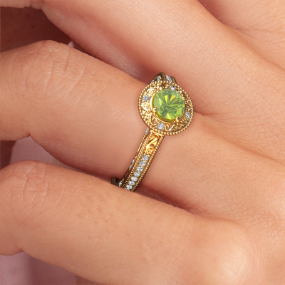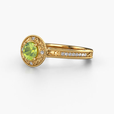 Dieser Verlobungsring aus 14 Karat Gold heißt Alice RND und hat einen 5 mm Peridot. Ein außergewöhnlicher, Gold Vintage Ring. Einer, der die Liebe Ihres Lebens mit Sicherheit wie ein Peridot erstrahlen lässt! Das hoffen wir zu erreichen. Dieser Vintage Verlobungsring ist mit exquisiten Peridot besetzt. Welchen Edelstein Sie aus unserer Auswahl haben möchten, liegt ganz bei Ihnen. Der Edelstein wird mit großer Sorgfalt ausgewählt. Denn wir glauben, dass Ihr Perle Ränder Verlobungsring nur mit dem schönsten Edelstein gekrönt sein darf. Sehen Sie das auch so? Unser erfahrener Juwelier entwirft Ihren Ring in unserem eigenen Studio, wo der Peridot mit großer Präzision eingefasst wird. Der Ring wird dann bearbeitet und poliert, bis er perfekt ist. Nichts als das Beste für die Liebe Ihres Lebens! Jedes Schmuckstück lässt Ihren Finger erstrahlen. Ihr Ring ist mit Liebe von unseren Goldschmieden handgefertigt.Haben Sie ein bestimmtes Budget? Sie können uns gerne kontaktieren, damit wir Ihre Optionen besprechen können. Wir bieten unsere Verlobungsringe zum garantiert besten Preis, denn wir fertigen sie auf Bestellung. Solche Preise finden Sie nirgendwo anders!Unser Team fügt unserer Online-Kollektion täglich neue Designs hinzu. Unsere Designer und Goldschmiede arbeiten zusammen, um das beste Design zu kreieren. Wir bemühen uns, eine vielfältige Kollektion von Schmuckstücken anzubieten. Vielleicht haben Sie ein bestimmtes Design im Sinn. Eines, dass Sie irgendwo gesehen haben. Gerne geben wir Ihnen eine kostenlose Beratung. Wir machen Ihnen ein Angebot, basierend auf einem fairen Preis/Leistungsverhältnis, das Sie verblüffen wird.Um es einfacher zu machen, bieten wir eine kostenlose 30-tägige Rücksendung.