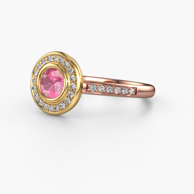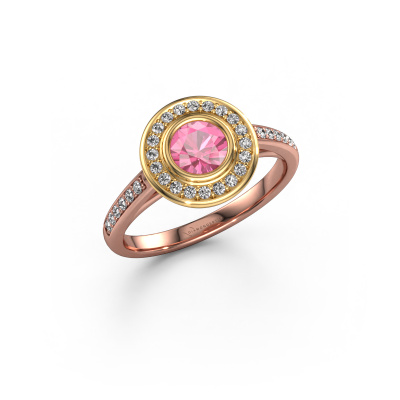 Der oben gezeigte Verlobungsring wird Noud 2 RND genannt. Es ist ein Halo Ring, da er einen zentralen Edelstein und ein Band mit Pavé-Fassung hat. Der 14 Karat Roségold ring ist mit einem 5 mm rund Pink Saphir-Mittelstein besetzt und um ihn herum eine Pavé-Fassung mit Diamanten. Was diesen Luxus, Roségold Halo Ring besonders macht, sind die kleineren Steine, die den zentralen Stein umschließen. Dieser wunderschöne Verlobungsring wird als Halo Ring bezeichnet, da die kleineren Edelsteine dem zentralen Stein einen Lichthof geben. Damit die kleineren Steine den Mittelstein verstärken, müssen sie so platziert werden, dass keine Lichteinflüsse auftreten. Und hier kommen unsere erfahrenen Goldschmiede ins Spiel. Jeder einzelne Stein wird sorgfältig von Hand in den Ring gesetzt. Während der Herstellung wird der Lichteinfall ständig überprüft. So können wir sicherstellen, dass der spezielle Lichtkranz noch sichtbar ist. Am Ende erhalten Sie einen einzigartigen Verlobungsring mit einem Pink Saphir Ihrer Wahl in der Mitte. Sie können sich die Wirkung eines solchen Ringes vorstellen, wenn Sie ihn an ihrem besonderen Tag für sie zum Leuchten bringen. Durch die Kombination modernster Technik mit uralter Handwerkskunst können wir alle Verlobungsringe in unserem eigenen Studio anfertigen. Jedes Schmuckstück wird auf Anfrage gefertigt. Das ist vorteilhaft, weil wir Ihnen dadurch einen Preis anbieten können, den Sie nirgendwo anders finden.Haben Sie irgendwo einen bestimmten Verlobungsring gefunden, den Sie Ihrem Liebsten schenken möchten? Sie können uns gerne sagen, was Sie wollen und wir werden Ihr Design in einen Einzigartigen Luxus Verlobungsring verwandeln. Sie können die Entwicklungen Ihres Ringdesigns verfolgen, da wir 3D-Zeichnungen verwenden. Das gibt Ihnen eine realistische Vorschau, wie Ihr Design aussehen wird. Sie können auch einen Dummy vorbestellen. Ein Dummy ist ein Kunststoffring, der nach Ihrem Ringdesign gestaltet werden kann. Sie können ihn anprobieren und prüfen, ob seine Breite und Größe für Sie geeignet sind. Wir senden Ihnen gerne ein unverbindliches Angebot zu einem fairen Preis/Leistungsverhältnis. Sie werden in Anbetracht der Qualität des Rings und der Edelsteine überrascht sein.Um es einfacher zu machen, bieten wir eine kostenlose 30-tägige Rücksendung.