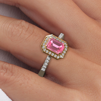 Dieser Ring aus 14 Karat Weißgold heißt Dodie 2 eme und hat 7x5 mm Pink Saphir. Dieser schöne 14 Karat Weißgold Halo Verlobungsring ist ein wahres Kunstwerk! Die Ornamente werden mit viel Geduld und großer Leidenschaft gefertigt. Um diesen Ring mit großer Präzision zu schaffen, erfordert dieses Handwerk ein scharfes Auge und eine geschickte Hand. Eine Herausforderung, die bei unseren erfahrenen Juwelieren ein Feuer entfacht. Die exquisiten Pink Saphir sind auf eine besondere Art und Weise gefasst, so dass sie noch mehr hervorstechen. Dies verleiht dem Ring eine noch glamourösere Erscheinung. Der Ring an sich ist schon wegen der Edelsteine einzigartig, die wir speziell für diesen Ring auswählen. Obendrein wählen Sie die Edelmetalle aus, mit denen Ihr einzigartiger Ring für die außergewöhnlichste Frau Ihres Lebens gemacht wird! Jedes Schmuckstück wird nur für Sie persönlich hergestellt, mit Liebe zum Detail und Design.Da wir unsere eigenen Ringe entwerfen und liefern, können wir Ihnen einen Verlobungsring zu einem Preis anbieten, den Sie nirgendwo anders finden. Ein Ring wird auf Bestellung angefertigt, wodurch kein überschüssiges Material anfällt. So können wir Ihnen ein gutes Angebot zum besten Preis machen. Wir verstehen, dass es sich riskant anfühlt, Ihren Verlobungsring online zu kaufen. Jedoch helfen wir Ihnen gerne beim Designprozess unter Berücksichtigung Ihres Budgets.Haben Sie einen bestimmten Ring im Sinn? Eines, dass Sie irgendwo gesehen haben. Bitte zögern Sie nicht, uns zu sagen, was Sie wollen und wir werden Ihr Design in einen Einzigartigen Verlobungsring verwandeln. Sie können die Entwicklungen Ihres Ringdesigns verfolgen, da wir 3D-Zeichnungen verwenden. Das gibt Ihnen eine realistische Vorschau Ihres Designs. Wir senden Ihnen gerne ein unverbindliches Angebot zu einem fairen Preis/Leistungsverhältnis. Es wird Sie erstaunen.Um es einfacher zu machen, bieten wir eine kostenlose 30-tägige Rücksendung.