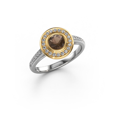 Der oben gezeigte Verlobungsring wird Noud 2 RND genannt. Es ist ein Halo Ring, da er einen zentralen Edelstein und ein Band mit Pavé-Fassung hat. Der 14 Karat Weißgold ring ist mit einem 5 mm rund Rauchquarz-Mittelstein besetzt und um ihn herum eine Pavé-Fassung mit Diamanten. Was diesen Luxus, Weißgold Halo Ring besonders macht, sind die kleineren Steine, die den zentralen Stein umschließen. Dieser wunderschöne Verlobungsring wird als Halo Ring bezeichnet, da die kleineren Edelsteine dem zentralen Stein einen Lichthof geben. Damit die kleineren Steine den Mittelstein verstärken, müssen sie so platziert werden, dass keine Lichteinflüsse auftreten. Und hier kommen unsere erfahrenen Goldschmiede ins Spiel. Jeder einzelne Stein wird sorgfältig von Hand in den Ring gesetzt. Während der Herstellung wird der Lichteinfall ständig überprüft. So können wir sicherstellen, dass der spezielle Lichtkranz noch sichtbar ist. Am Ende erhalten Sie einen einzigartigen Verlobungsring mit einem Rauchquarz Ihrer Wahl in der Mitte. Sie können sich die Wirkung eines solchen Ringes vorstellen, wenn Sie ihn an ihrem besonderen Tag für sie zum Leuchten bringen. Durch die Kombination modernster Technik mit uralter Handwerkskunst können wir alle Verlobungsringe in unserem eigenen Studio anfertigen. Jedes Schmuckstück wird auf Anfrage gefertigt. Das ist vorteilhaft, weil wir Ihnen dadurch einen Preis anbieten können, den Sie nirgendwo anders finden.Haben Sie irgendwo einen bestimmten Verlobungsring gefunden, den Sie Ihrem Liebsten schenken möchten? Sie können uns gerne sagen, was Sie wollen und wir werden Ihr Design in einen Einzigartigen Luxus Verlobungsring verwandeln. Sie können die Entwicklungen Ihres Ringdesigns verfolgen, da wir 3D-Zeichnungen verwenden. Das gibt Ihnen eine realistische Vorschau, wie Ihr Design aussehen wird. Sie können auch einen Dummy vorbestellen. Ein Dummy ist ein Kunststoffring, der nach Ihrem Ringdesign gestaltet werden kann. Sie können ihn anprobieren und prüfen, ob seine Breite und Größe für Sie geeignet sind. Wir senden Ihnen gerne ein unverbindliches Angebot zu einem fairen Preis/Leistungsverhältnis. Sie werden in Anbetracht der Qualität des Rings und der Edelsteine überrascht sein.Um es einfacher zu machen, bieten wir eine kostenlose 30-tägige Rücksendung.