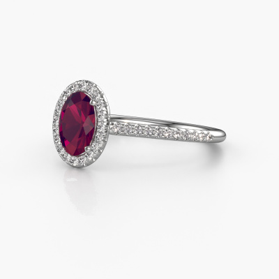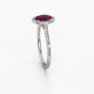 Der oben gezeigte Verlobungsring wird Seline ovl 2 genannt. Es ist ein Halo Ring, da er einen zentralen Edelstein und ein Band mit Pavé-Fassung hat. Der 14 Karat Weißgold ring ist mit einem 7x5 mm oval Rhodolit-Mittelstein besetzt und um ihn herum eine Pavé-Fassung mit Diamanten. Was diesen exklusive, Weißgold Halo Ring besonders macht, sind die kleineren Steine, die den zentralen Stein umschließen. Dieser wunderschöne Verlobungsring wird als Halo Ring bezeichnet, da die kleineren Edelsteine dem zentralen Stein einen Lichthof geben. Damit die kleineren Steine den Mittelstein verstärken, müssen sie so platziert werden, dass keine Lichteinflüsse auftreten. Und hier kommen unsere erfahrenen Goldschmiede ins Spiel. Jeder einzelne Stein wird sorgfältig von Hand in den Ring gesetzt. Während der Herstellung wird der Lichteinfall ständig überprüft. So können wir sicherstellen, dass der spezielle Lichtkranz noch sichtbar ist. Am Ende erhalten Sie einen einzigartigen Verlobungsring mit einem Rhodolit Ihrer Wahl in der Mitte. Sie können sich die Wirkung eines solchen Ringes vorstellen, wenn Sie ihn an ihrem besonderen Tag für sie zum Leuchten bringen. Nachdem Sie Ihre Bestellung aufgegeben haben, beginnen unsere Goldschmiede mit dem kreativen Prozess der Herstellung Ihres Seline ovl 2 Verlobungsring. Wir haben keine Lager. Das ist vorteilhaft, da diese Kosten nicht an Sie weitergegeben werden. Daher sind wir in der Lage, Schmuck zu außergewöhnlich niedrigen Preisen anzubieten.Unser Team fügt unserer Online-Kollektion täglich neue Designs hinzu. Unsere Designer und Goldschmiede arbeiten zusammen, um das beste Design zu kreieren. Wir bemühen uns, eine vielfältige Kollektion von Schmuckstücken anzubieten. Vielleicht haben Sie ein bestimmtes Design im Sinn. Eines, dass Sie irgendwo gesehen haben. Gerne geben wir Ihnen eine kostenlose Beratung. Wir machen Ihnen ein Angebot, basierend auf einem fairen Preis/Leistungsverhältnis, das Sie verblüffen wird.Um es einfacher zu machen, bieten wir eine kostenlose 30-tägige Rücksendung.