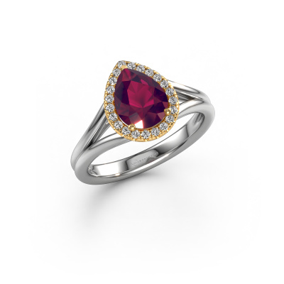Dieser Ring aus 14 Karat Weißgold heißt Verla pear 1 und hat 8x6 mm Rhodolit. Dieser zierliche 14 Karat Weißgold Halo Verlobungsring ist ein wahres Kunstwerk! Die Ornamente werden mit viel Geduld und großer Leidenschaft gefertigt. Um diesen Ring mit großer Präzision zu schaffen, erfordert dieses Handwerk ein scharfes Auge und eine geschickte Hand. Eine Herausforderung, die bei unseren erfahrenen Juwelieren ein Feuer entfacht. Die exquisiten Rhodolit sind auf eine besondere Art und Weise gefasst, so dass sie noch mehr hervorstechen. Dies verleiht dem Ring eine noch glamourösere Erscheinung. Der Ring an sich ist schon wegen der Edelsteine einzigartig, die wir speziell für diesen Ring auswählen. Obendrein wählen Sie die Edelmetalle aus, mit denen Ihr einzigartiger Ring für die außergewöhnlichste Frau Ihres Lebens gemacht wird! Jedes Schmuckstück lässt Ihren Finger erstrahlen. Ihr Ring ist mit Liebe von unseren Goldschmieden handgefertigt.Durch die Kombination modernster Technik mit uralter Handwerkskunst können wir alle Verlobungsringe in unserem eigenen Studio anfertigen. Jedes Schmuckstück wird auf Anfrage gefertigt. Das ist vorteilhaft, weil wir Ihnen dadurch einen Preis anbieten können, den Sie nirgendwo anders finden.Haben Sie irgendwo einen bestimmten Verlobungsring gefunden, den Sie Ihrem Liebsten schenken möchten? Sie können uns gerne sagen, was Sie wollen und wir werden Ihr Design in einen Einzigartigen Luxus Verlobungsring verwandeln. Sie können die Entwicklungen Ihres Ringdesigns verfolgen, da wir 3D-Zeichnungen verwenden. Das gibt Ihnen eine realistische Vorschau, wie Ihr Design aussehen wird. Sie können auch einen Dummy vorbestellen. Ein Dummy ist ein Kunststoffring, der nach Ihrem Ringdesign gestaltet werden kann. Sie können ihn anprobieren und prüfen, ob seine Breite und Größe für Sie geeignet sind. Wir senden Ihnen gerne ein unverbindliches Angebot zu einem fairen Preis/Leistungsverhältnis. Sie werden in Anbetracht der Qualität des Rings und der Edelsteine überrascht sein.Um es einfacher zu machen, bieten wir eine kostenlose 30-tägige Rücksendung.