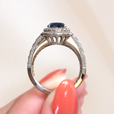 Dieser Ring aus Platin heißt Nancie und hat 9x7 mm Saphir. Dieser graziöse Platin Halo Verlobungsring ist ein wahres Kunstwerk! Die Ornamente werden mit viel Geduld und großer Leidenschaft gefertigt. Um diesen Ring mit großer Präzision zu schaffen, erfordert dieses Handwerk ein scharfes Auge und eine geschickte Hand. Eine Herausforderung, die bei unseren erfahrenen Juwelieren ein Feuer entfacht. Die exquisiten Saphir sind auf eine besondere Art und Weise gefasst, so dass sie noch mehr hervorstechen. Dies verleiht dem Ring eine noch glamourösere Erscheinung. Der Ring an sich ist schon wegen der Edelsteine einzigartig, die wir speziell für diesen Ring auswählen. Obendrein wählen Sie die Edelmetalle aus, mit denen Ihr einzigartiger Ring für die außergewöhnlichste Frau Ihres Lebens gemacht wird! Jedes Schmuckstück ist um Ihrem Finger Glanz zu verleihen. Jeder Ring wird von unseren Goldschmieden liebevoll von Hand gefertigt.Haben Sie ein bestimmtes Budget? Sie können uns gerne kontaktieren, damit wir Ihre Optionen besprechen können. Wir bieten unsere Verlobungsringe zum garantiert besten Preis, denn wir fertigen sie auf Bestellung. Solche Preise finden Sie nirgendwo anders!Unsere Designer und Goldschmiede arbeiten jeden Tag zusammen und versuchen, neue Schmuckstücke zu kreieren. Vielleicht haben Sie irgendwo einen schönen, klassische Verlobungsring gefunden, nach dem Ihr einzigartiger Ring gestaltet werden kann. Setzen Sie sich mit uns in Verbindung. Wir machen Ihnen ein Angebot, basierend auf einem fairen Preis/Leistungsverhältnis, das Sie begeistern wird.Um es einfacher zu machen, bieten wir eine kostenlose 30-tägige Rücksendung.