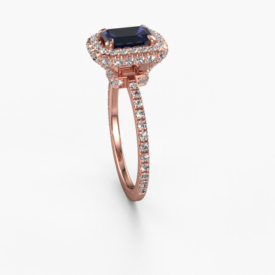 Der oben gezeigte Verlobungsring wird Talitha EME genannt. Es ist ein Halo Ring, da er einen zentralen Edelstein und ein Band mit Pavé-Fassung hat. Der 14 Karat Roségold ring ist mit einem 7x5 mm smaragd schliff Saphir-Mittelstein besetzt und um ihn herum eine Pavé-Fassung mit Lab grown Diamant. Was diesen Luxus, Roségold Halo Ring besonders macht, sind die kleineren Steine, die den zentralen Stein umschließen. Dieser wunderschöne Verlobungsring wird als Halo Ring bezeichnet, da die kleineren Edelsteine dem zentralen Stein einen Lichthof geben. Damit die kleineren Steine den Mittelstein verstärken, müssen sie so platziert werden, dass keine Lichteinflüsse auftreten. Und hier kommen unsere erfahrenen Goldschmiede ins Spiel. Jeder einzelne Stein wird sorgfältig von Hand in den Ring gesetzt. Während der Herstellung wird der Lichteinfall ständig überprüft. So können wir sicherstellen, dass der spezielle Lichtkranz noch sichtbar ist. Am Ende erhalten Sie einen einzigartigen Verlobungsring mit einem Saphir Ihrer Wahl in der Mitte. Sie können sich die Wirkung eines solchen Ringes vorstellen, wenn Sie ihn an ihrem besonderen Tag für sie zum Leuchten bringen. Mit unserer modernen Technik können wir Schmuckstücke von höchster Qualität mit größter Sorgfalt für Sie entwerfen und anpassen. Unsere Verlobungsringe sind immer um 30 Prozent günstiger als bei anderen Juwelieren. Wir fertigen Verlobungsringe auf Bestellung, also müssen wir keine großen Lager unterhalten. Wenn Sie ein bestimmtes Budget haben, beraten wir Sie gerne entsprechend.Unser Team fügt unserer Online-Kollektion täglich neue Designs hinzu. Unsere Designer und Goldschmiede arbeiten zusammen, um das beste Design zu kreieren. Wir bemühen uns, eine vielfältige Kollektion von Schmuckstücken anzubieten. Vielleicht haben Sie ein bestimmtes Design im Sinn. Eines, dass Sie irgendwo gesehen haben. Gerne geben wir Ihnen eine kostenlose Beratung. Wir machen Ihnen ein Angebot, basierend auf einem fairen Preis/Leistungsverhältnis, das Sie verblüffen wird.Um es einfacher zu machen, bieten wir eine kostenlose 30-tägige Rücksendung.