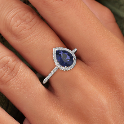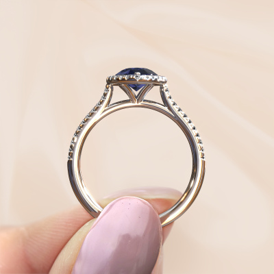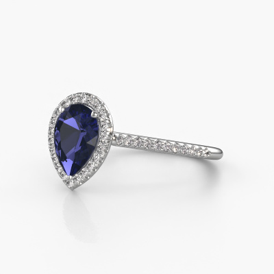 Der oben gezeigte Verlobungsring wird Seline per 2 genannt. Es ist ein Halo Ring, da er einen zentralen Edelstein und ein Band mit Pavé-Fassung hat. Der 14 Karat Weißgold ring ist mit einem 8x6 mm tropfen Saphir-Mittelstein besetzt und um ihn herum eine Pavé-Fassung mit Diamanten. Was diesen klassische, Weißgold Halo Ring besonders macht, sind die kleineren Steine, die den zentralen Stein umschließen. Dieser wunderschöne Verlobungsring wird als Halo Ring bezeichnet, da die kleineren Edelsteine dem zentralen Stein einen Lichthof geben. Damit die kleineren Steine den Mittelstein verstärken, müssen sie so platziert werden, dass keine Lichteinflüsse auftreten. Und hier kommen unsere erfahrenen Goldschmiede ins Spiel. Jeder einzelne Stein wird sorgfältig von Hand in den Ring gesetzt. Während der Herstellung wird der Lichteinfall ständig überprüft. So können wir sicherstellen, dass der spezielle Lichtkranz noch sichtbar ist. Am Ende erhalten Sie einen einzigartigen Verlobungsring mit einem Saphir Ihrer Wahl in der Mitte. Sie können sich die Wirkung eines solchen Ringes vorstellen, wenn Sie ihn an ihrem besonderen Tag für sie zum Leuchten bringen. Da wir unsere eigenen Ringe entwerfen und liefern, können wir Ihnen einen Verlobungsring zu einem Preis anbieten, den Sie nirgendwo anders finden. Ein Ring wird auf Bestellung angefertigt, wodurch kein überschüssiges Material anfällt. So können wir Ihnen ein gutes Angebot zum besten Preis machen. Wir verstehen, dass es sich riskant anfühlt, Ihren Verlobungsring online zu kaufen. Jedoch helfen wir Ihnen gerne beim Designprozess unter Berücksichtigung Ihres Budgets.Unsere Designer und Goldschmiede arbeiten jeden Tag zusammen und versuchen, neue Schmuckstücke zu kreieren. Vielleicht haben Sie irgendwo einen schönen, klassische Verlobungsring gefunden, nach dem Ihr einzigartiger Ring gestaltet werden kann. Setzen Sie sich mit uns in Verbindung. Wir machen Ihnen ein Angebot, basierend auf einem fairen Preis/Leistungsverhältnis, das Sie begeistern wird.Um es einfacher zu machen, bieten wir eine kostenlose 30-tägige Rücksendung.