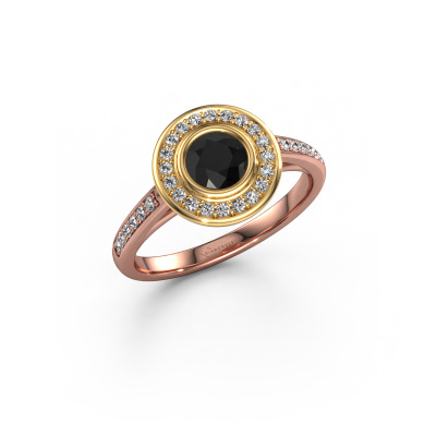Der oben gezeigte Verlobungsring wird Noud 2 RND genannt. Es ist ein Halo Ring, da er einen zentralen Edelstein und ein Band mit Pavé-Fassung hat. Der 14 Karat Roségold ring ist mit einem 0.60 crt rund Schwarz Diamant-Mittelstein besetzt und um ihn herum eine Pavé-Fassung mit Diamanten. Was diesen Luxus, Roségold Halo Ring besonders macht, sind die kleineren Steine, die den zentralen Stein umschließen. Dieser wunderschöne Verlobungsring wird als Halo Ring bezeichnet, da die kleineren Edelsteine dem zentralen Stein einen Lichthof geben. Damit die kleineren Steine den Mittelstein verstärken, müssen sie so platziert werden, dass keine Lichteinflüsse auftreten. Und hier kommen unsere erfahrenen Goldschmiede ins Spiel. Jeder einzelne Stein wird sorgfältig von Hand in den Ring gesetzt. Während der Herstellung wird der Lichteinfall ständig überprüft. So können wir sicherstellen, dass der spezielle Lichtkranz noch sichtbar ist. Am Ende erhalten Sie einen einzigartigen Verlobungsring mit einem Schwarze Diamanten Ihrer Wahl in der Mitte. Sie können sich die Wirkung eines solchen Ringes vorstellen, wenn Sie ihn an ihrem besonderen Tag für sie zum Leuchten bringen. Durch die Kombination modernster Technik mit uralter Handwerkskunst können wir alle Verlobungsringe in unserem eigenen Studio anfertigen. Jedes Schmuckstück wird auf Anfrage gefertigt. Das ist vorteilhaft, weil wir Ihnen dadurch einen Preis anbieten können, den Sie nirgendwo anders finden.Haben Sie irgendwo einen bestimmten Verlobungsring gefunden, den Sie Ihrem Liebsten schenken möchten? Sie können uns gerne sagen, was Sie wollen und wir werden Ihr Design in einen Einzigartigen Luxus Verlobungsring verwandeln. Sie können die Entwicklungen Ihres Ringdesigns verfolgen, da wir 3D-Zeichnungen verwenden. Das gibt Ihnen eine realistische Vorschau, wie Ihr Design aussehen wird. Sie können auch einen Dummy vorbestellen. Ein Dummy ist ein Kunststoffring, der nach Ihrem Ringdesign gestaltet werden kann. Sie können ihn anprobieren und prüfen, ob seine Breite und Größe für Sie geeignet sind. Wir senden Ihnen gerne ein unverbindliches Angebot zu einem fairen Preis/Leistungsverhältnis. Sie werden in Anbetracht der Qualität des Rings und der Edelsteine überrascht sein.Um es einfacher zu machen, bieten wir eine kostenlose 30-tägige Rücksendung.