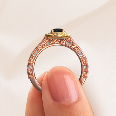 Dieser Verlobungsring aus 14 Karat Roségold heißt Alice RND und hat einen 0.78 crt Schwarz Diamant. Ein außergewöhnlicher, Roségold Vintage Ring. Einer, der die Liebe Ihres Lebens mit Sicherheit wie ein Schwarz Diamant erstrahlen lässt! Das hoffen wir zu erreichen. Dieser Vintage Verlobungsring ist mit exquisiten Schwarz Diamant besetzt. Welchen Edelstein Sie aus unserer Auswahl haben möchten, liegt ganz bei Ihnen. Der Edelstein wird mit großer Sorgfalt ausgewählt. Denn wir glauben, dass Ihr Perle Ränder Verlobungsring nur mit dem schönsten Edelstein gekrönt sein darf. Sehen Sie das auch so? Unser erfahrener Juwelier entwirft Ihren Ring in unserem eigenen Studio, wo der Schwarz Diamant mit großer Präzision eingefasst wird. Der Ring wird dann bearbeitet und poliert, bis er perfekt ist. Nichts als das Beste für die Liebe Ihres Lebens! Jedes Schmuckstück lässt Ihren Finger erstrahlen. Ihr Ring ist mit Liebe von unseren Goldschmieden handgefertigt.Haben Sie ein bestimmtes Budget? Sie können uns gerne kontaktieren, damit wir Ihre Optionen besprechen können. Wir bieten unsere Verlobungsringe zum garantiert besten Preis, denn wir fertigen sie auf Bestellung. Solche Preise finden Sie nirgendwo anders!Unser Team fügt unserer Online-Kollektion täglich neue Designs hinzu. Unsere Designer und Goldschmiede arbeiten zusammen, um das beste Design zu kreieren. Wir bemühen uns, eine vielfältige Kollektion von Schmuckstücken anzubieten. Vielleicht haben Sie ein bestimmtes Design im Sinn. Eines, dass Sie irgendwo gesehen haben. Gerne geben wir Ihnen eine kostenlose Beratung. Wir machen Ihnen ein Angebot, basierend auf einem fairen Preis/Leistungsverhältnis, das Sie verblüffen wird.Um es einfacher zu machen, bieten wir eine kostenlose 30-tägige Rücksendung.