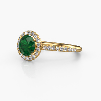 Der oben gezeigte Verlobungsring wird Seline rnd 2 genannt. Es ist ein Halo Ring, da er einen zentralen Edelstein und ein Band mit Pavé-Fassung hat. Der 14 Karat Gold ring ist mit einem 6.5 mm rund Smaragd-Mittelstein besetzt und um ihn herum eine Pavé-Fassung mit Lab grown Diamant. Was diesen exklusive, Gold Halo Ring besonders macht, sind die kleineren Steine, die den zentralen Stein umschließen. Dieser wunderschöne Verlobungsring wird als Halo Ring bezeichnet, da die kleineren Edelsteine dem zentralen Stein einen Lichthof geben. Damit die kleineren Steine den Mittelstein verstärken, müssen sie so platziert werden, dass keine Lichteinflüsse auftreten. Und hier kommen unsere erfahrenen Goldschmiede ins Spiel. Jeder einzelne Stein wird sorgfältig von Hand in den Ring gesetzt. Während der Herstellung wird der Lichteinfall ständig überprüft. So können wir sicherstellen, dass der spezielle Lichtkranz noch sichtbar ist. Am Ende erhalten Sie einen einzigartigen Verlobungsring mit einem Smaragd Ihrer Wahl in der Mitte. Sie können sich die Wirkung eines solchen Ringes vorstellen, wenn Sie ihn an ihrem besonderen Tag für sie zum Leuchten bringen. Nachdem Sie Ihre Bestellung aufgegeben haben, beginnen unsere Goldschmiede mit dem kreativen Prozess der Herstellung Ihres Seline rnd 2 Verlobungsring. Wir haben keine Lager. Das ist vorteilhaft, da diese Kosten nicht an Sie weitergegeben werden. Daher sind wir in der Lage, Schmuck zu außergewöhnlich niedrigen Preisen anzubieten.Unser Team fügt unserer Online-Kollektion täglich neue Designs hinzu. Unsere Designer und Goldschmiede arbeiten zusammen, um das beste Design zu kreieren. Wir bemühen uns, eine vielfältige Kollektion von Schmuckstücken anzubieten. Vielleicht haben Sie ein bestimmtes Design im Sinn. Eines, dass Sie irgendwo gesehen haben. Gerne geben wir Ihnen eine kostenlose Beratung. Wir machen Ihnen ein Angebot, basierend auf einem fairen Preis/Leistungsverhältnis, das Sie verblüffen wird.Um es einfacher zu machen, bieten wir eine kostenlose 30-tägige Rücksendung.