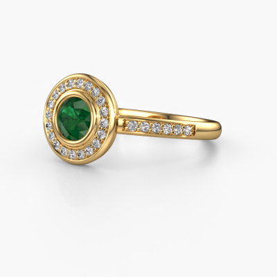Der oben gezeigte Verlobungsring wird Noud 2 RND genannt. Es ist ein Halo Ring, da er einen zentralen Edelstein und ein Band mit Pavé-Fassung hat. Der 14 Karat Gold ring ist mit einem 5 mm rund Smaragd-Mittelstein besetzt und um ihn herum eine Pavé-Fassung mit Diamanten. Was diesen Luxus, Gold Halo Ring besonders macht, sind die kleineren Steine, die den zentralen Stein umschließen. Dieser wunderschöne Verlobungsring wird als Halo Ring bezeichnet, da die kleineren Edelsteine dem zentralen Stein einen Lichthof geben. Damit die kleineren Steine den Mittelstein verstärken, müssen sie so platziert werden, dass keine Lichteinflüsse auftreten. Und hier kommen unsere erfahrenen Goldschmiede ins Spiel. Jeder einzelne Stein wird sorgfältig von Hand in den Ring gesetzt. Während der Herstellung wird der Lichteinfall ständig überprüft. So können wir sicherstellen, dass der spezielle Lichtkranz noch sichtbar ist. Am Ende erhalten Sie einen einzigartigen Verlobungsring mit einem Smaragd Ihrer Wahl in der Mitte. Sie können sich die Wirkung eines solchen Ringes vorstellen, wenn Sie ihn an ihrem besonderen Tag für sie zum Leuchten bringen. Durch die Kombination modernster Technik mit uralter Handwerkskunst können wir alle Verlobungsringe in unserem eigenen Studio anfertigen. Jedes Schmuckstück wird auf Anfrage gefertigt. Das ist vorteilhaft, weil wir Ihnen dadurch einen Preis anbieten können, den Sie nirgendwo anders finden.Haben Sie irgendwo einen bestimmten Verlobungsring gefunden, den Sie Ihrem Liebsten schenken möchten? Sie können uns gerne sagen, was Sie wollen und wir werden Ihr Design in einen Einzigartigen Luxus Verlobungsring verwandeln. Sie können die Entwicklungen Ihres Ringdesigns verfolgen, da wir 3D-Zeichnungen verwenden. Das gibt Ihnen eine realistische Vorschau, wie Ihr Design aussehen wird. Sie können auch einen Dummy vorbestellen. Ein Dummy ist ein Kunststoffring, der nach Ihrem Ringdesign gestaltet werden kann. Sie können ihn anprobieren und prüfen, ob seine Breite und Größe für Sie geeignet sind. Wir senden Ihnen gerne ein unverbindliches Angebot zu einem fairen Preis/Leistungsverhältnis. Sie werden in Anbetracht der Qualität des Rings und der Edelsteine überrascht sein.Um es einfacher zu machen, bieten wir eine kostenlose 30-tägige Rücksendung.