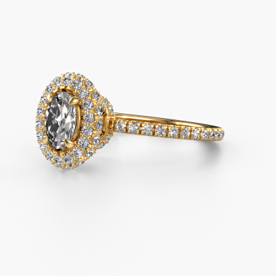 Der oben gezeigte Verlobungsring wird Talitha OVL genannt. Es ist ein Halo Ring, da er einen zentralen Edelstein und ein Band mit Pavé-Fassung hat. Der 14 Karat Gold ring ist mit einem 0.60 crt oval Diamant-Mittelstein besetzt und um ihn herum eine Pavé-Fassung mit Lab grown Diamant. Was diesen klassische, Gold Halo Ring besonders macht, sind die kleineren Steine, die den zentralen Stein umschließen. Dieser wunderschöne Verlobungsring wird als Halo Ring bezeichnet, da die kleineren Edelsteine dem zentralen Stein einen Lichthof geben. Damit die kleineren Steine den Mittelstein verstärken, müssen sie so platziert werden, dass keine Lichteinflüsse auftreten. Und hier kommen unsere erfahrenen Goldschmiede ins Spiel. Jeder einzelne Stein wird sorgfältig von Hand in den Ring gesetzt. Während der Herstellung wird der Lichteinfall ständig überprüft. So können wir sicherstellen, dass der spezielle Lichtkranz noch sichtbar ist. Am Ende erhalten Sie einen einzigartigen Verlobungsring mit einem Diamanten Ihrer Wahl in der Mitte. Sie können sich die Wirkung eines solchen Ringes vorstellen, wenn Sie ihn an ihrem besonderen Tag für sie zum Leuchten bringen. Durch die Kombination modernster Technik mit uralter Handwerkskunst können wir alle Verlobungsringe in unserem eigenen Studio anfertigen. Jedes Schmuckstück wird auf Anfrage gefertigt. Das ist vorteilhaft, weil wir Ihnen dadurch einen Preis anbieten können, den Sie nirgendwo anders finden.Unsere Designer und Goldschmiede arbeiten jeden Tag zusammen und versuchen, neue Schmuckstücke zu kreieren. Vielleicht haben Sie irgendwo einen schönen, klassische Verlobungsring gefunden, nach dem Ihr einzigartiger Ring gestaltet werden kann. Setzen Sie sich mit uns in Verbindung. Wir machen Ihnen ein Angebot, basierend auf einem fairen Preis/Leistungsverhältnis, das Sie begeistern wird.Um es einfacher zu machen, bieten wir eine kostenlose 30-tägige Rücksendung.
