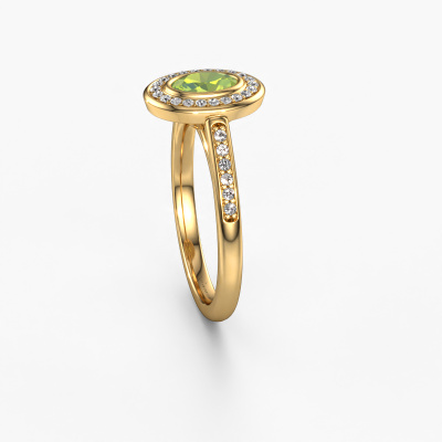 Der oben gezeigte Verlobungsring wird Noud 2 OVL genannt. Es ist ein Halo Ring, da er einen zentralen Edelstein und ein Band mit Pavé-Fassung hat. Der 14 Karat Gold ring ist mit einem 6x4 mm oval Peridot-Mittelstein besetzt und um ihn herum eine Pavé-Fassung mit Lab grown Diamant. Was diesen exklusive, Gold Halo Ring besonders macht, sind die kleineren Steine, die den zentralen Stein umschließen. Dieser wunderschöne Verlobungsring wird als Halo Ring bezeichnet, da die kleineren Edelsteine dem zentralen Stein einen Lichthof geben. Damit die kleineren Steine den Mittelstein verstärken, müssen sie so platziert werden, dass keine Lichteinflüsse auftreten. Und hier kommen unsere erfahrenen Goldschmiede ins Spiel. Jeder einzelne Stein wird sorgfältig von Hand in den Ring gesetzt. Während der Herstellung wird der Lichteinfall ständig überprüft. So können wir sicherstellen, dass der spezielle Lichtkranz noch sichtbar ist. Am Ende erhalten Sie einen einzigartigen Verlobungsring mit einem Peridot Ihrer Wahl in der Mitte. Sie können sich die Wirkung eines solchen Ringes vorstellen, wenn Sie ihn an ihrem besonderen Tag für sie zum Leuchten bringen. Mit unserer modernen Technik können wir Schmuckstücke von höchster Qualität mit größter Sorgfalt für Sie entwerfen und anpassen. Unsere Verlobungsringe sind immer um 30 Prozent günstiger als bei anderen Juwelieren. Wir fertigen Verlobungsringe auf Bestellung, also müssen wir keine großen Lager unterhalten. Wenn Sie ein bestimmtes Budget haben, beraten wir Sie gerne entsprechend.Haben Sie irgendwo einen bestimmten Verlobungsring gefunden, den Sie Ihrem Liebsten schenken möchten? Sie können uns gerne sagen, was Sie wollen und wir werden Ihr Design in einen Einzigartigen exklusive Verlobungsring verwandeln. Sie können die Entwicklungen Ihres Ringdesigns verfolgen, da wir 3D-Zeichnungen verwenden. Das gibt Ihnen eine realistische Vorschau, wie Ihr Design aussehen wird. Sie können auch einen Dummy vorbestellen. Ein Dummy ist ein Kunststoffring, der nach Ihrem Ringdesign gestaltet werden kann. Sie können ihn anprobieren und prüfen, ob seine Breite und Größe für Sie geeignet sind. Wir senden Ihnen gerne ein unverbindliches Angebot zu einem fairen Preis/Leistungsverhältnis. Sie werden in Anbetracht der Qualität des Rings und der Edelsteine überrascht sein.Um es einfacher zu machen, bieten wir eine kostenlose 30-tägige Rücksendung.