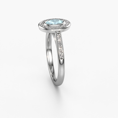 Der oben gezeigte Verlobungsring wird Noud 2 OVL genannt. Es ist ein Halo Ring, da er einen zentralen Edelstein und ein Band mit Pavé-Fassung hat. Der Platin ring ist mit einem 6x4 mm oval Aquamarin-Mittelstein besetzt und um ihn herum eine Pavé-Fassung mit Lab grown Diamant. Was diesen exklusive, Platin Halo Ring besonders macht, sind die kleineren Steine, die den zentralen Stein umschließen. Dieser wunderschöne Verlobungsring wird als Halo Ring bezeichnet, da die kleineren Edelsteine dem zentralen Stein einen Lichthof geben. Damit die kleineren Steine den Mittelstein verstärken, müssen sie so platziert werden, dass keine Lichteinflüsse auftreten. Und hier kommen unsere erfahrenen Goldschmiede ins Spiel. Jeder einzelne Stein wird sorgfältig von Hand in den Ring gesetzt. Während der Herstellung wird der Lichteinfall ständig überprüft. So können wir sicherstellen, dass der spezielle Lichtkranz noch sichtbar ist. Am Ende erhalten Sie einen einzigartigen Verlobungsring mit einem Aquamarins Ihrer Wahl in der Mitte. Sie können sich die Wirkung eines solchen Ringes vorstellen, wenn Sie ihn an ihrem besonderen Tag für sie zum Leuchten bringen. Mit unserer modernen Technik können wir Schmuckstücke von höchster Qualität mit größter Sorgfalt für Sie entwerfen und anpassen. Unsere Verlobungsringe sind immer um 30 Prozent günstiger als bei anderen Juwelieren. Wir fertigen Verlobungsringe auf Bestellung, also müssen wir keine großen Lager unterhalten. Wenn Sie ein bestimmtes Budget haben, beraten wir Sie gerne entsprechend.Haben Sie irgendwo einen bestimmten Verlobungsring gefunden, den Sie Ihrem Liebsten schenken möchten? Sie können uns gerne sagen, was Sie wollen und wir werden Ihr Design in einen Einzigartigen exklusive Verlobungsring verwandeln. Sie können die Entwicklungen Ihres Ringdesigns verfolgen, da wir 3D-Zeichnungen verwenden. Das gibt Ihnen eine realistische Vorschau, wie Ihr Design aussehen wird. Sie können auch einen Dummy vorbestellen. Ein Dummy ist ein Kunststoffring, der nach Ihrem Ringdesign gestaltet werden kann. Sie können ihn anprobieren und prüfen, ob seine Breite und Größe für Sie geeignet sind. Wir senden Ihnen gerne ein unverbindliches Angebot zu einem fairen Preis/Leistungsverhältnis. Sie werden in Anbetracht der Qualität des Rings und der Edelsteine überrascht sein.Um es einfacher zu machen, bieten wir eine kostenlose 30-tägige Rücksendung.