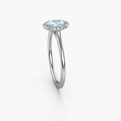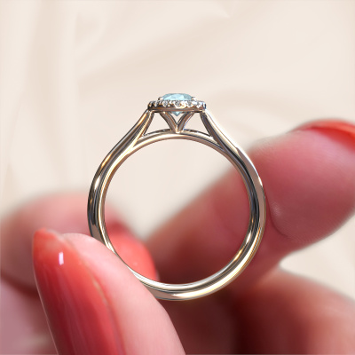 Der oben gezeigte Verlobungsring wird Seline ovl 1 genannt. Es ist ein Halo Ring, da er einen zentralen Edelstein und ein Band mit Pavé-Fassung hat. Der Platin ring ist mit einem 6x4 mm oval Aquamarin-Mittelstein besetzt und um ihn herum eine Pavé-Fassung mit Diamanten. Was diesen klassische, Platin Halo Ring besonders macht, sind die kleineren Steine, die den zentralen Stein umschließen. Dieser wunderschöne Verlobungsring wird als Halo Ring bezeichnet, da die kleineren Edelsteine dem zentralen Stein einen Lichthof geben. Damit die kleineren Steine den Mittelstein verstärken, müssen sie so platziert werden, dass keine Lichteinflüsse auftreten. Und hier kommen unsere erfahrenen Goldschmiede ins Spiel. Jeder einzelne Stein wird sorgfältig von Hand in den Ring gesetzt. Während der Herstellung wird der Lichteinfall ständig überprüft. So können wir sicherstellen, dass der spezielle Lichtkranz noch sichtbar ist. Am Ende erhalten Sie einen einzigartigen Verlobungsring mit einem Aquamarins Ihrer Wahl in der Mitte. Sie können sich die Wirkung eines solchen Ringes vorstellen, wenn Sie ihn an ihrem besonderen Tag für sie zum Leuchten bringen. Haben Sie ein bestimmtes Budget? Sie können uns gerne kontaktieren, damit wir Ihre Optionen besprechen können. Wir bieten unsere Verlobungsringe zum garantiert besten Preis, denn wir fertigen sie auf Bestellung. Solche Preise finden Sie nirgendwo anders!Unser Team fügt unserer Online-Kollektion täglich neue Designs hinzu. Unsere Designer und Goldschmiede arbeiten zusammen, um das beste Design zu kreieren. Wir bemühen uns, eine vielfältige Kollektion von Schmuckstücken anzubieten. Vielleicht haben Sie ein bestimmtes Design im Sinn. Eines, dass Sie irgendwo gesehen haben. Gerne geben wir Ihnen eine kostenlose Beratung. Wir machen Ihnen ein Angebot, basierend auf einem fairen Preis/Leistungsverhältnis, das Sie verblüffen wird.Um es einfacher zu machen, bieten wir eine kostenlose 30-tägige Rücksendung.