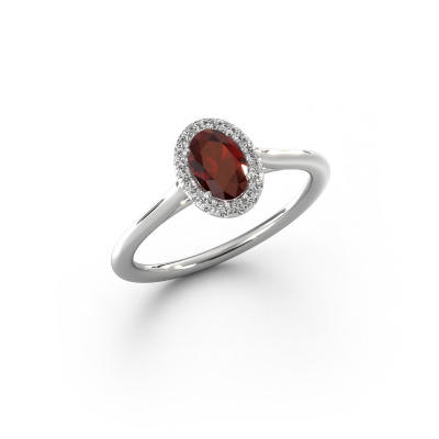 Der oben gezeigte Verlobungsring wird Seline ovl 1 genannt. Es ist ein Halo Ring, da er einen zentralen Edelstein und ein Band mit Pavé-Fassung hat. Der Platin ring ist mit einem 6x4 mm oval Granat-Mittelstein besetzt und um ihn herum eine Pavé-Fassung mit Diamanten. Was diesen klassische, Platin Halo Ring besonders macht, sind die kleineren Steine, die den zentralen Stein umschließen. Dieser wunderschöne Verlobungsring wird als Halo Ring bezeichnet, da die kleineren Edelsteine dem zentralen Stein einen Lichthof geben. Damit die kleineren Steine den Mittelstein verstärken, müssen sie so platziert werden, dass keine Lichteinflüsse auftreten. Und hier kommen unsere erfahrenen Goldschmiede ins Spiel. Jeder einzelne Stein wird sorgfältig von Hand in den Ring gesetzt. Während der Herstellung wird der Lichteinfall ständig überprüft. So können wir sicherstellen, dass der spezielle Lichtkranz noch sichtbar ist. Am Ende erhalten Sie einen einzigartigen Verlobungsring mit einem Granat Ihrer Wahl in der Mitte. Sie können sich die Wirkung eines solchen Ringes vorstellen, wenn Sie ihn an ihrem besonderen Tag für sie zum Leuchten bringen. Haben Sie ein bestimmtes Budget? Sie können uns gerne kontaktieren, damit wir Ihre Optionen besprechen können. Wir bieten unsere Verlobungsringe zum garantiert besten Preis, denn wir fertigen sie auf Bestellung. Solche Preise finden Sie nirgendwo anders!Unser Team fügt unserer Online-Kollektion täglich neue Designs hinzu. Unsere Designer und Goldschmiede arbeiten zusammen, um das beste Design zu kreieren. Wir bemühen uns, eine vielfältige Kollektion von Schmuckstücken anzubieten. Vielleicht haben Sie ein bestimmtes Design im Sinn. Eines, dass Sie irgendwo gesehen haben. Gerne geben wir Ihnen eine kostenlose Beratung. Wir machen Ihnen ein Angebot, basierend auf einem fairen Preis/Leistungsverhältnis, das Sie verblüffen wird.Um es einfacher zu machen, bieten wir eine kostenlose 30-tägige Rücksendung.