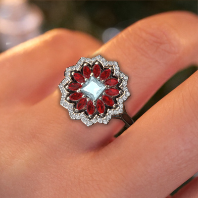 Dieser gewagte Verlobungsring aus Platin heißt Franka und hat 4 mm Aquamarin. Ist Ihre Freundin von Vintage begeistert? Dann wird dieser Platin Verlobungsring sicherlich perfekt zu ihrem Stil passen. Ein trendiger Ring mit einem Hauch von klassischem Schmuck. Ein wirklich atemberaubendes, romantisches Design! Vor allem, wenn Sie den Ring nach ihren Wünschen anpassen. Dieser Vintage Halo Verlobungsring ist mit atemberaubenden Aquamarins besetzt. Wie Sie sehen können, sind Sie der Boss bei der Auswahl des Edelsteins, der am besten zu Ihrer Freundin passt. Jeder Edelstein wird sorgfältig von unseren Händlern ausgewählt, die auf der ganzen Welt verteilt sind. Nichts als die besten Edelsteine für unseren erfahrenen Juwelier! Schließlich ist es seine Krönung! Jedes Schmuckstück wird von unseren Meister-Goldschmieden in unserem eigenen Studio für Sie gefertigt.Durch die Kombination modernster Technik mit uralter Handwerkskunst können wir alle Verlobungsringe in unserem eigenen Studio anfertigen. Jedes Schmuckstück wird auf Anfrage gefertigt. Das ist vorteilhaft, weil wir Ihnen dadurch einen Preis anbieten können, den Sie nirgendwo anders finden.Unsere Designer und Goldschmiede arbeiten jeden Tag zusammen und versuchen, neue Schmuckstücke zu kreieren. Vielleicht haben Sie irgendwo einen schönen, Vintage Verlobungsring gefunden, nach dem Ihr einzigartiger Ring gestaltet werden kann. Setzen Sie sich mit uns in Verbindung. Wir machen Ihnen ein Angebot, basierend auf einem fairen Preis/Leistungsverhältnis, das Sie begeistern wird.Um es einfacher zu machen, bieten wir eine kostenlose 30-tägige Rücksendung.