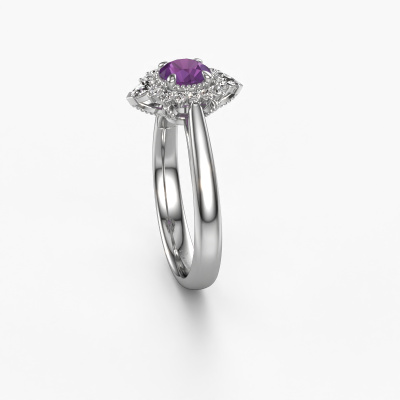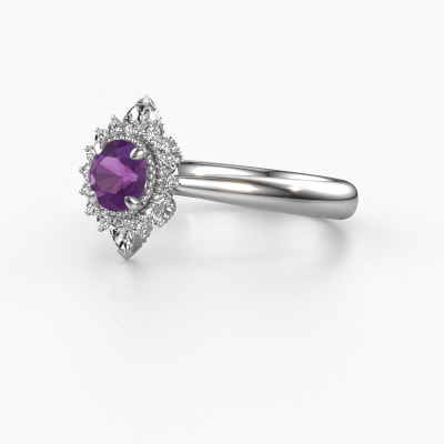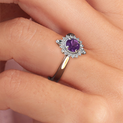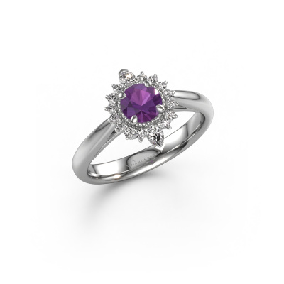 Dieser geschmackvolle Verlobungsring aus Platin heißt Susan und hat 5 mm Amethyst. Ist Ihre Freundin von Vintage begeistert? Dann wird dieser Platin Verlobungsring sicherlich perfekt zu ihrem Stil passen. Ein trendiger Ring mit einem Hauch von klassischem Schmuck. Ein wirklich atemberaubendes, romantisches Design! Vor allem, wenn Sie den Ring nach ihren Wünschen anpassen. Dieser Vintage Halo Verlobungsring ist mit atemberaubenden Amethysten besetzt. Wie Sie sehen können, sind Sie der Boss bei der Auswahl des Edelsteins, der am besten zu Ihrer Freundin passt. Jeder Edelstein wird sorgfältig von unseren Händlern ausgewählt, die auf der ganzen Welt verteilt sind. Nichts als die besten Edelsteine für unseren erfahrenen Juwelier! Schließlich ist es seine Krönung! Jedes Schmuckstück wird nur für Sie persönlich hergestellt, mit Liebe zum Detail und Design.Durch die Kombination modernster Technik mit uralter Handwerkskunst können wir alle Verlobungsringe in unserem eigenen Studio anfertigen. Jedes Schmuckstück wird auf Anfrage gefertigt. Das ist vorteilhaft, weil wir Ihnen dadurch einen Preis anbieten können, den Sie nirgendwo anders finden.Unser Team fügt unserer Online-Kollektion täglich neue Designs hinzu. Unsere Designer und Goldschmiede arbeiten zusammen, um das beste Design zu kreieren. Wir bemühen uns, eine vielfältige Kollektion von Schmuckstücken anzubieten. Vielleicht haben Sie ein bestimmtes Design im Sinn. Eines, dass Sie irgendwo gesehen haben. Gerne geben wir Ihnen eine kostenlose Beratung. Wir machen Ihnen ein Angebot, basierend auf einem fairen Preis/Leistungsverhältnis, das Sie verblüffen wird.Um es einfacher zu machen, bieten wir eine kostenlose 30-tägige Rücksendung.