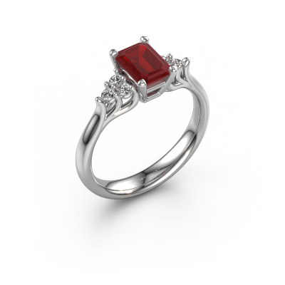 Der oben gezeigte Verlobungsring wird Monika EME genannt. Wir nennen das einen Solitär-Ring, denn er hat einen einzelnen Edelstein. Es ist ein Platin Verlobungsring, mit 7x5 mm smaragd schliff Rubin. Dieser außergewöhnliche, klassische Platin Solitär-Verlobungsring mit einem schönen, smaragd schliff Rubin soll Ihrem Antrag ein Funkeln geben. Die offenen Krappen ermöglichen, dass Licht aus mehr Winkeln auf den Edelstein trifft. Wussten Sie, dass ein Rubin für ewige Liebe und Treue steht? Das macht ihn zum perfekten Mittelstück. Unsere Goldschmiede positioniert den Edelstein Ihrer Wahl sorgfältig oben auf dem Ring. Dadurch sticht er hervor. Jedes Schmuckstück wird von unseren Meister-Goldschmieden in unserem eigenen Studio für Sie gefertigt.Mit unserer modernen Technik können wir Schmuckstücke von höchster Qualität mit größter Sorgfalt für Sie entwerfen und anpassen. Unsere Verlobungsringe sind immer um 30 Prozent günstiger als bei anderen Juwelieren. Wir fertigen Verlobungsringe auf Bestellung, also müssen wir keine großen Lager unterhalten. Wenn Sie ein bestimmtes Budget haben, beraten wir Sie gerne entsprechend.Unser Team fügt unserer Online-Kollektion täglich neue Designs hinzu. Unsere Designer und Goldschmiede arbeiten zusammen, um das beste Design zu kreieren. Wir bemühen uns, eine vielfältige Kollektion von Schmuckstücken anzubieten. Vielleicht haben Sie ein bestimmtes Design im Sinn. Eines, dass Sie irgendwo gesehen haben. Gerne geben wir Ihnen eine kostenlose Beratung. Wir machen Ihnen ein Angebot, basierend auf einem fairen Preis/Leistungsverhältnis, das Sie verblüffen wird.Um es einfacher zu machen, bieten wir eine kostenlose 30-tägige Rücksendung.
