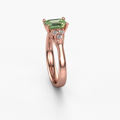 Der oben gezeigte Verlobungsring wird Monika EME genannt. Wir nennen das einen Solitär-Ring, denn er hat einen einzelnen Edelstein. Es ist ein 14 Karat Roségold Verlobungsring, mit 7x5 mm smaragd schliff grüner Labor-Diamant. Dieser außergewöhnliche, klassische Roségold Solitär-Verlobungsring mit einem schönen, smaragd schliff grüner Labor-Diamant soll Ihrem Antrag ein Funkeln geben. Die offenen Krappen ermöglichen, dass Licht aus mehr Winkeln auf den Edelstein trifft. Wussten Sie, dass ein grüner Labor-Diamant für ewige Liebe und Treue steht? Das macht ihn zum perfekten Mittelstück. Unsere Goldschmiede positioniert den Edelstein Ihrer Wahl sorgfältig oben auf dem Ring. Dadurch sticht er hervor. Jedes Schmuckstück wird von unseren Meister-Goldschmieden in unserem eigenen Studio für Sie gefertigt.Mit unserer modernen Technik können wir Schmuckstücke von höchster Qualität mit größter Sorgfalt für Sie entwerfen und anpassen. Unsere Verlobungsringe sind immer um 30 Prozent günstiger als bei anderen Juwelieren. Wir fertigen Verlobungsringe auf Bestellung, also müssen wir keine großen Lager unterhalten. Wenn Sie ein bestimmtes Budget haben, beraten wir Sie gerne entsprechend.Unser Team fügt unserer Online-Kollektion täglich neue Designs hinzu. Unsere Designer und Goldschmiede arbeiten zusammen, um das beste Design zu kreieren. Wir bemühen uns, eine vielfältige Kollektion von Schmuckstücken anzubieten. Vielleicht haben Sie ein bestimmtes Design im Sinn. Eines, dass Sie irgendwo gesehen haben. Gerne geben wir Ihnen eine kostenlose Beratung. Wir machen Ihnen ein Angebot, basierend auf einem fairen Preis/Leistungsverhältnis, das Sie verblüffen wird.Um es einfacher zu machen, bieten wir eine kostenlose 30-tägige Rücksendung.