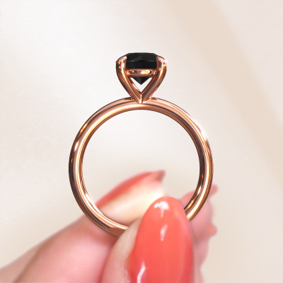Der oben gezeigte Verlobungsring wird Simone RND 1 genannt. Wir nennen das einen Solitär-Ring, denn er hat einen einzelnen Edelstein. Es ist ein 14 Karat Roségold Verlobungsring, mit 1.85 crt rund Schwarz Diamant. Dieser außergewöhnliche, klassische Roségold Solitär-Verlobungsring mit einem schönen, rund Schwarz Diamant soll Ihrem Antrag ein Funkeln geben. Die offenen Krappen ermöglichen, dass Licht aus mehr Winkeln auf den Edelstein trifft. Wussten Sie, dass ein Schwarz Diamant für ewige Liebe und Treue steht? Das macht ihn zum perfekten Mittelstück. Unsere Goldschmiede positioniert den Edelstein Ihrer Wahl sorgfältig oben auf dem Ring. Dadurch sticht er hervor. Jedes Schmuckstück wird nur für Sie persönlich hergestellt, mit Liebe zum Detail und Design.Durch die Kombination modernster Technik mit uralter Handwerkskunst können wir alle Verlobungsringe in unserem eigenen Studio anfertigen. Jedes Schmuckstück wird auf Anfrage gefertigt. Das ist vorteilhaft, weil wir Ihnen dadurch einen Preis anbieten können, den Sie nirgendwo anders finden.Verschiedene Arten von neuen Ringen werden täglich von unserem Team angefertigt. Vielleicht haben Sie irgendwo einen Solitär Verlobungsring gefunden. Einen, den Sie Ihrem Liebsten schenken möchten. Bitte zögern Sie nicht, unseren Schmuckdesignern Ihre Gedanken und Ihr Design zu zeigen. Wir würden gerne Ihr Design in einen klassische Verlobungsring verwandeln. Sie können die Entwicklungen Ihres Ringdesigns verfolgen, da wir sehr detaillierte 3D-Zeichnungen verwenden. Darüber hinaus können Sie einen Dummy des Designs bestellen. Ein Dummy ist ein Kunststoffring, der nach Ihrem Ringdesign gestaltet werden kann. Sie können ihn anprobieren und prüfen, ob der Verlobungsring Ihren Vorstellungen entspricht. Wir senden Ihnen gerne ein unverbindliches Angebot zu einem fairen Preis/Leistungsverhältnis. Das Angebot wird Sie angesichts der Qualität des Rings und der Edelsteine verblüffen.Um es einfacher zu machen, bieten wir eine kostenlose 30-tägige Rücksendung.