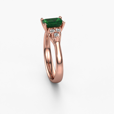 Der oben gezeigte Verlobungsring wird Monika EME genannt. Wir nennen das einen Solitär-Ring, denn er hat einen einzelnen Edelstein. Es ist ein 14 Karat Roségold Verlobungsring, mit 7x5 mm smaragd schliff Smaragd. Dieser außergewöhnliche, klassische Roségold Solitär-Verlobungsring mit einem schönen, smaragd schliff Smaragd soll Ihrem Antrag ein Funkeln geben. Die offenen Krappen ermöglichen, dass Licht aus mehr Winkeln auf den Edelstein trifft. Wussten Sie, dass ein Smaragd für ewige Liebe und Treue steht? Das macht ihn zum perfekten Mittelstück. Unsere Goldschmiede positioniert den Edelstein Ihrer Wahl sorgfältig oben auf dem Ring. Dadurch sticht er hervor. Jedes Schmuckstück wird von unseren Meister-Goldschmieden in unserem eigenen Studio für Sie gefertigt.Mit unserer modernen Technik können wir Schmuckstücke von höchster Qualität mit größter Sorgfalt für Sie entwerfen und anpassen. Unsere Verlobungsringe sind immer um 30 Prozent günstiger als bei anderen Juwelieren. Wir fertigen Verlobungsringe auf Bestellung, also müssen wir keine großen Lager unterhalten. Wenn Sie ein bestimmtes Budget haben, beraten wir Sie gerne entsprechend.Unser Team fügt unserer Online-Kollektion täglich neue Designs hinzu. Unsere Designer und Goldschmiede arbeiten zusammen, um das beste Design zu kreieren. Wir bemühen uns, eine vielfältige Kollektion von Schmuckstücken anzubieten. Vielleicht haben Sie ein bestimmtes Design im Sinn. Eines, dass Sie irgendwo gesehen haben. Gerne geben wir Ihnen eine kostenlose Beratung. Wir machen Ihnen ein Angebot, basierend auf einem fairen Preis/Leistungsverhältnis, das Sie verblüffen wird.Um es einfacher zu machen, bieten wir eine kostenlose 30-tägige Rücksendung.