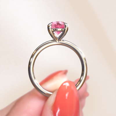 Der oben gezeigte Verlobungsring wird Simone RND 1 genannt. Wir nennen das einen Solitär-Ring, denn er hat einen einzelnen Edelstein. Es ist ein 14 Karat Weißgold Verlobungsring, mit 7.3 mm rund Pink Saphir. Dieser außergewöhnliche, klassische Weißgold Solitär-Verlobungsring mit einem schönen, rund Pink Saphir soll Ihrem Antrag ein Funkeln geben. Die offenen Krappen ermöglichen, dass Licht aus mehr Winkeln auf den Edelstein trifft. Wussten Sie, dass ein Pink Saphir für ewige Liebe und Treue steht? Das macht ihn zum perfekten Mittelstück. Unsere Goldschmiede positioniert den Edelstein Ihrer Wahl sorgfältig oben auf dem Ring. Dadurch sticht er hervor. Jedes Schmuckstück wird nur für Sie persönlich hergestellt, mit Liebe zum Detail und Design.Durch die Kombination modernster Technik mit uralter Handwerkskunst können wir alle Verlobungsringe in unserem eigenen Studio anfertigen. Jedes Schmuckstück wird auf Anfrage gefertigt. Das ist vorteilhaft, weil wir Ihnen dadurch einen Preis anbieten können, den Sie nirgendwo anders finden.Verschiedene Arten von neuen Ringen werden täglich von unserem Team angefertigt. Vielleicht haben Sie irgendwo einen Solitär Verlobungsring gefunden. Einen, den Sie Ihrem Liebsten schenken möchten. Bitte zögern Sie nicht, unseren Schmuckdesignern Ihre Gedanken und Ihr Design zu zeigen. Wir würden gerne Ihr Design in einen klassische Verlobungsring verwandeln. Sie können die Entwicklungen Ihres Ringdesigns verfolgen, da wir sehr detaillierte 3D-Zeichnungen verwenden. Darüber hinaus können Sie einen Dummy des Designs bestellen. Ein Dummy ist ein Kunststoffring, der nach Ihrem Ringdesign gestaltet werden kann. Sie können ihn anprobieren und prüfen, ob der Verlobungsring Ihren Vorstellungen entspricht. Wir senden Ihnen gerne ein unverbindliches Angebot zu einem fairen Preis/Leistungsverhältnis. Das Angebot wird Sie angesichts der Qualität des Rings und der Edelsteine verblüffen.Um es einfacher zu machen, bieten wir eine kostenlose 30-tägige Rücksendung.