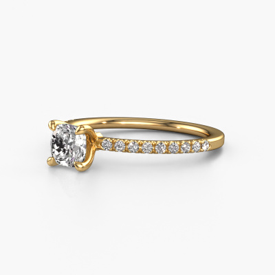 Der oben gezeigte Gold Verlobungsring wird Crystal CUS 2 genannt. Es ist ein Pavé Solitär Ring, da er einen zentralen Edelstein und ein Band mit Pavé-Fassung hat. Der klassische Pavé Solitär Verlobungsring ist in der Kombination 14 Karat Gold mit Gold und ist mit einem cussion 0.70 crt Lab-grown Diamant-Mittelstein besetzt und das Band hat eine Pavé-Fassung mit Diamanten. Jedes Schmuckstück wird von unseren Meister-Goldschmieden in unserem eigenen Studio für Sie gefertigt. Um den zentralen Stein noch mehr zu betonen, hat das Band eine Pavé-Fassung mit weiteren Lab-grown Diamant. Durch die offenen Krappen kann das Licht aus mehreren Winkeln auf den Lab-grown Diamant treffen und der Lab-grown Diamant-Ring funkelt noch mehr. Das obere Foto zeigt die leidenschaftlich handgefertigten Details des Rings. Die hohe Positionierung der Mittelstein ist ein echter Blickfang. Der perfekte Verlobungsring für das Kronjuwel Ihres Lebens!Nachdem Sie Ihre Bestellung aufgegeben haben, beginnen unsere Goldschmiede mit dem kreativen Prozess der Herstellung Ihres Crystal CUS 2 Verlobungsring. Wir haben keine Lager. Das ist vorteilhaft, da diese Kosten nicht an Sie weitergegeben werden. Daher sind wir in der Lage, Schmuck zu außergewöhnlich niedrigen Preisen anzubieten.Verschiedene Arten von neuen Ringen werden täglich von unserem Team angefertigt. Vielleicht haben Sie irgendwo einen Pavé Solitär Verlobungsring gefunden. Einen, den Sie Ihrem Liebsten schenken möchten. Bitte zögern Sie nicht, unseren Schmuckdesignern Ihre Gedanken und Ihr Design zu zeigen. Wir würden gerne Ihr Design in einen klassische Verlobungsring verwandeln. Sie können die Entwicklungen Ihres Ringdesigns verfolgen, da wir sehr detaillierte 3D-Zeichnungen verwenden. Darüber hinaus können Sie einen Dummy des Designs bestellen. Ein Dummy ist ein Kunststoffring, der nach Ihrem Ringdesign gestaltet werden kann. Sie können ihn anprobieren und prüfen, ob der Verlobungsring Ihren Vorstellungen entspricht. Wir senden Ihnen gerne ein unverbindliches Angebot zu einem fairen Preis/Leistungsverhältnis. Das Angebot wird Sie angesichts der Qualität des Rings und der Edelsteine verblüffen.Um es einfacher zu machen, bieten wir eine kostenlose 30-tägige Rücksendung.