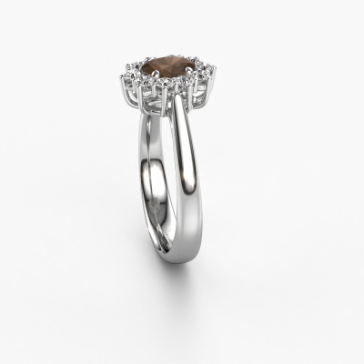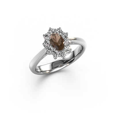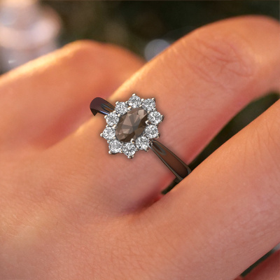 Der oben gezeigte Ring, mit dem Namen Leesa 1, nennen wir einen Lady Diana Verlobungsring. Der Cluster Ring trägt einem zentralen Edelstein, umgeben von kleineren Steinen. Diese Version in 14 Karat Weißgold hat einen oval Rauchquarz von oval als Mittelstein, umschlossen von kleineren Diamanten. Was diesen klassische Weißgold Lady Diana Ring besonders macht, sind die kleinen Edelsteine rund um den zentralen Rauchquarz, die wie eine schöne Blume geformt sind. Der umgebende Steinkranz umrahmt den Mittelstein so, dass er größer erscheint. Diese Art von Verlobungsring wird auch Blumen- oder Rosettenring genannt. Es ist sehr wichtig, dass die kleineren Rauchquarz identisch positioniert sind, so dass es kein Spiel im Licht, sondern eine perfekte Einheit ergibt. Unsere erfahrenen Juweliere erledigen diese Arbeit. Jeder einzelne Stein wird sorgfältig von Hand gesetzt. Während der Herstellung wird der Lichteinfall ständig überwacht, um sicherzustellen, dass der spezielle Lady Diana-Effekt noch sichtbar ist. Am Ende bekommen Sie den perfekten Verlobungsring mit einem strahlenden Rauchquarz Edelstein Herzstück. Sie können sich die Wirkung eines solchen Ringes vorstellen, wenn Sie ihn an ihrem besonderen Tag für die Liebe Ihres Lebens zum Leuchten bringen. Jedes Schmuckstück lässt Ihren Finger erstrahlen. Ihr Ring ist mit Liebe von unseren Goldschmieden handgefertigt.Nachdem Sie Ihre Bestellung aufgegeben haben, beginnen unsere Goldschmiede mit dem kreativen Prozess der Herstellung Ihres Leesa 1 Verlobungsring. Wir haben keine Lager. Das ist vorteilhaft, da diese Kosten nicht an Sie weitergegeben werden. Daher sind wir in der Lage, Schmuck zu außergewöhnlich niedrigen Preisen anzubieten.Haben Sie irgendwo einen bestimmten Verlobungsring gefunden, den Sie Ihrem Liebsten schenken möchten? Sie können uns gerne sagen, was Sie wollen und wir werden Ihr Design in einen Einzigartigen klassische Verlobungsring verwandeln. Sie können die Entwicklungen Ihres Ringdesigns verfolgen, da wir 3D-Zeichnungen verwenden. Das gibt Ihnen eine realistische Vorschau, wie Ihr Design aussehen wird. Sie können auch einen Dummy vorbestellen. Ein Dummy ist ein Kunststoffring, der nach Ihrem Ringdesign gestaltet werden kann. Sie können ihn anprobieren und prüfen, ob seine Breite und Größe für Sie geeignet sind. Wir senden Ihnen gerne ein unverbindliches Angebot zu einem fairen Preis/Leistungsverhältnis. Sie werden in Anbetracht der Qualität des Rings und der Edelsteine überrascht sein.Um es einfacher zu machen, bieten wir eine kostenlose 30-tägige Rücksendung.