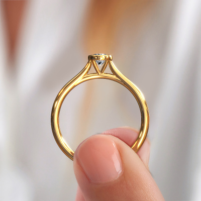 Der oben gezeigte Verlobungsring wird Lavon RND genannt. Wir nennen das einen Solitär-Ring, denn er hat einen einzelnen Edelstein. Es ist ein 14 Karat Gold Verlobungsring, mit 0.25 crt rund Diamant. Dieser außergewöhnliche, moderne Gold Solitär-Verlobungsring mit einem schönen, rund Diamant soll Ihrem Antrag ein Funkeln geben. Die offenen Krappen ermöglichen, dass Licht aus mehr Winkeln auf den Edelstein trifft. Wussten Sie, dass ein Diamant für ewige Liebe und Treue steht? Das macht ihn zum perfekten Mittelstück. Unsere Goldschmiede positioniert den Edelstein Ihrer Wahl sorgfältig oben auf dem Ring. Dadurch sticht er hervor. Jedes Schmuckstück wird hergestellt von einem Team leidenschaftlicher Goldschmiede und Schmuckdesigner. Das wird Ihr Kronjuwel unbedingt zu einem Blickfang machen.Haben Sie ein bestimmtes Budget? Sie können uns gerne kontaktieren, damit wir Ihre Optionen besprechen können. Wir bieten unsere Verlobungsringe zum garantiert besten Preis, denn wir fertigen sie auf Bestellung. Solche Preise finden Sie nirgendwo anders!Unser Team fügt unserer Online-Kollektion täglich neue Designs hinzu. Unsere Designer und Goldschmiede arbeiten zusammen, um das beste Design zu kreieren. Wir bemühen uns, eine vielfältige Kollektion von Schmuckstücken anzubieten. Vielleicht haben Sie ein bestimmtes Design im Sinn. Eines, dass Sie irgendwo gesehen haben. Gerne geben wir Ihnen eine kostenlose Beratung. Wir machen Ihnen ein Angebot, basierend auf einem fairen Preis/Leistungsverhältnis, das Sie verblüffen wird.Um es einfacher zu machen, bieten wir eine kostenlose 30-tägige Rücksendung.