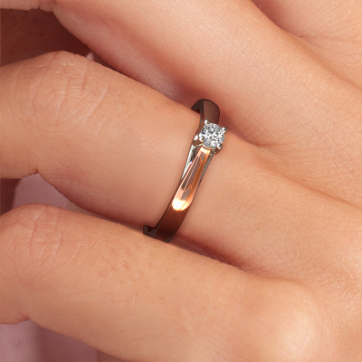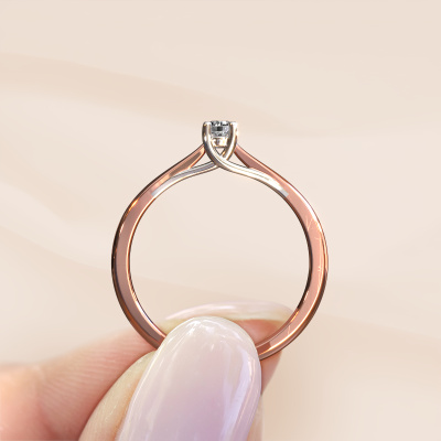 Der oben gezeigte Verlobungsring wird Mia 1 genannt. Wir nennen das einen Solitär-Ring, denn er hat einen einzelnen Edelstein. Es ist ein 14 Karat Roségold Verlobungsring, mit 0.08 crt rund Diamant. Dieser außergewöhnliche, moderne Roségold Solitär-Verlobungsring mit einem schönen, rund Diamant soll Ihrem Antrag ein Funkeln geben. Die offenen Krappen ermöglichen, dass Licht aus mehr Winkeln auf den Edelstein trifft. Wussten Sie, dass ein Diamant für ewige Liebe und Treue steht? Das macht ihn zum perfekten Mittelstück. Unsere Goldschmiede positioniert den Edelstein Ihrer Wahl sorgfältig oben auf dem Ring. Dadurch sticht er hervor. Jedes Schmuckstück wird von unseren Meister-Goldschmieden in unserem eigenen Studio für Sie gefertigt.Mit unserer modernen Technik können wir Schmuckstücke von höchster Qualität mit größter Sorgfalt für Sie entwerfen und anpassen. Unsere Verlobungsringe sind immer um 30 Prozent günstiger als bei anderen Juwelieren. Wir fertigen Verlobungsringe auf Bestellung, also müssen wir keine großen Lager unterhalten. Wenn Sie ein bestimmtes Budget haben, beraten wir Sie gerne entsprechend.Unsere Designer und Goldschmiede arbeiten jeden Tag zusammen und versuchen, neue Schmuckstücke zu kreieren. Vielleicht haben Sie irgendwo einen schönen, moderne Verlobungsring gefunden, nach dem Ihr einzigartiger Ring gestaltet werden kann. Setzen Sie sich mit uns in Verbindung. Wir machen Ihnen ein Angebot, basierend auf einem fairen Preis/Leistungsverhältnis, das Sie begeistern wird.Um es einfacher zu machen, bieten wir eine kostenlose 30-tägige Rücksendung.