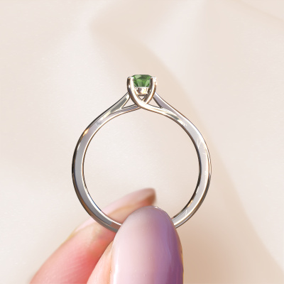 Der oben gezeigte Verlobungsring wird Mia 1 genannt. Wir nennen das einen Solitär-Ring, denn er hat einen einzelnen Edelstein. Es ist ein 14 Karat Weißgold Verlobungsring, mit 4 mm rund Turmalin grün. Dieser außergewöhnliche, moderne Weißgold Solitär-Verlobungsring mit einem schönen, rund Turmalin grün soll Ihrem Antrag ein Funkeln geben. Die offenen Krappen ermöglichen, dass Licht aus mehr Winkeln auf den Edelstein trifft. Wussten Sie, dass ein Turmalin grün für ewige Liebe und Treue steht? Das macht ihn zum perfekten Mittelstück. Unsere Goldschmiede positioniert den Edelstein Ihrer Wahl sorgfältig oben auf dem Ring. Dadurch sticht er hervor. Jedes Schmuckstück wird von unseren Meister-Goldschmieden in unserem eigenen Studio für Sie gefertigt.Mit unserer modernen Technik können wir Schmuckstücke von höchster Qualität mit größter Sorgfalt für Sie entwerfen und anpassen. Unsere Verlobungsringe sind immer um 30 Prozent günstiger als bei anderen Juwelieren. Wir fertigen Verlobungsringe auf Bestellung, also müssen wir keine großen Lager unterhalten. Wenn Sie ein bestimmtes Budget haben, beraten wir Sie gerne entsprechend.Unsere Designer und Goldschmiede arbeiten jeden Tag zusammen und versuchen, neue Schmuckstücke zu kreieren. Vielleicht haben Sie irgendwo einen schönen, moderne Verlobungsring gefunden, nach dem Ihr einzigartiger Ring gestaltet werden kann. Setzen Sie sich mit uns in Verbindung. Wir machen Ihnen ein Angebot, basierend auf einem fairen Preis/Leistungsverhältnis, das Sie begeistern wird.Um es einfacher zu machen, bieten wir eine kostenlose 30-tägige Rücksendung.